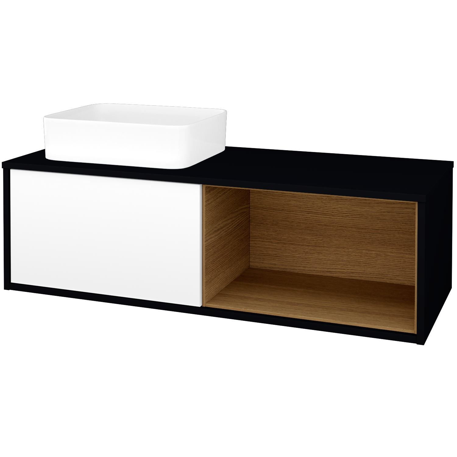 Umyvadlová skříňka (1200x370x500) s 1 zásuvkou, nikou vpravo s LED osvětlením uvnitř a keramickým umyvadlem Joy Zobrazit více