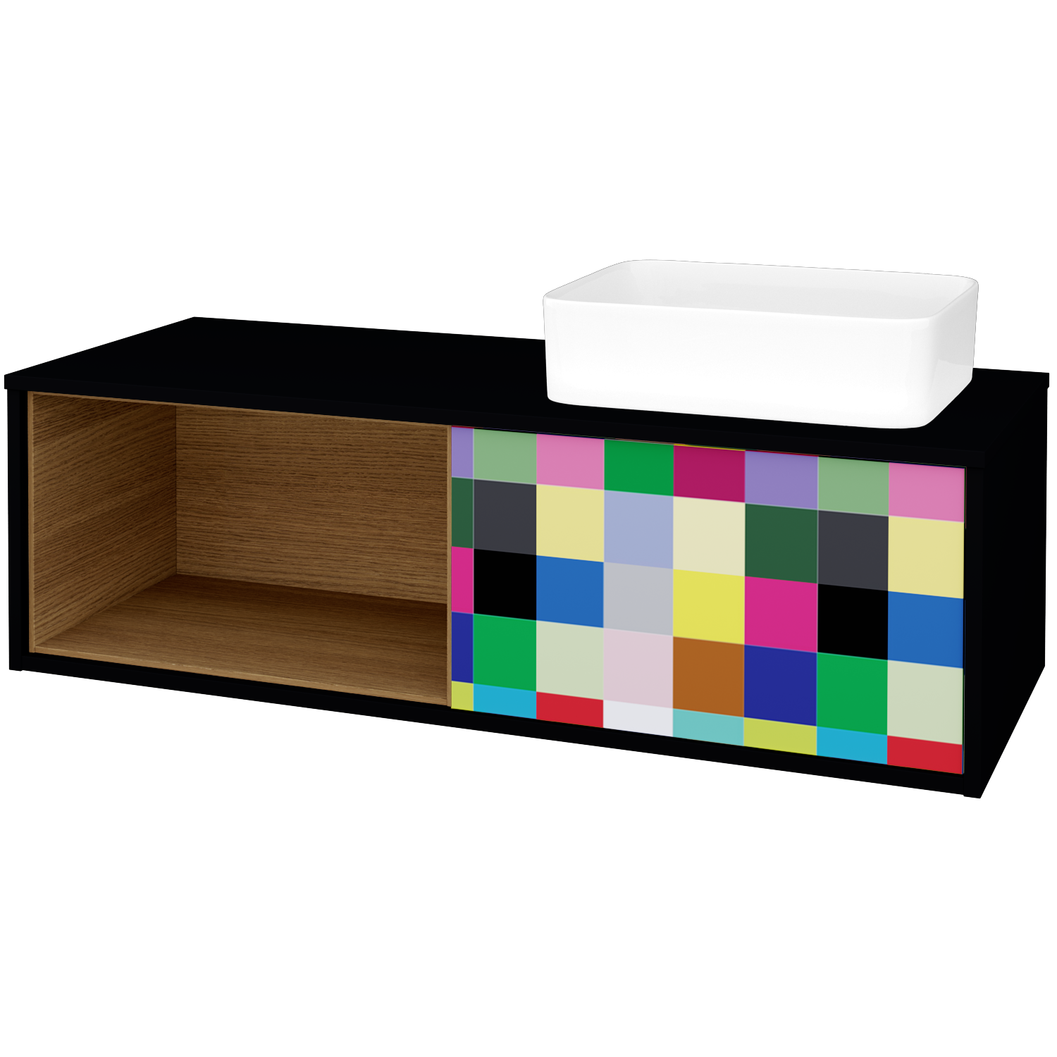 Umyvadlová skříňka (1200x370x500) s 1 zásuvkou, nikou vlevo s LED osvětlením uvnitř a keramickým umyvadlem Joy Zobrazit více
