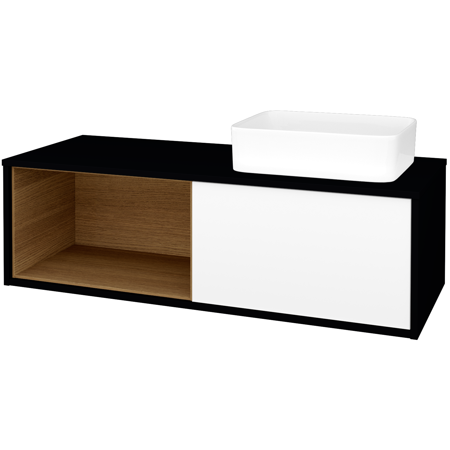 Umyvadlová skříňka (1200x370x500) s 1 zásuvkou, nikou vlevo s LED osvětlením uvnitř a keramickým umyvadlem Joy Zobrazit více