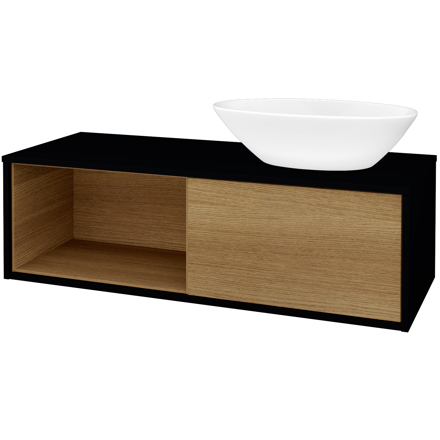 Umyvadlová skříňka (1200x370x500) s 1 zásuvkou, nikou vlevo s LED osvětlením uvnitř a keramickým umyvadlem Triumph Zobrazit více