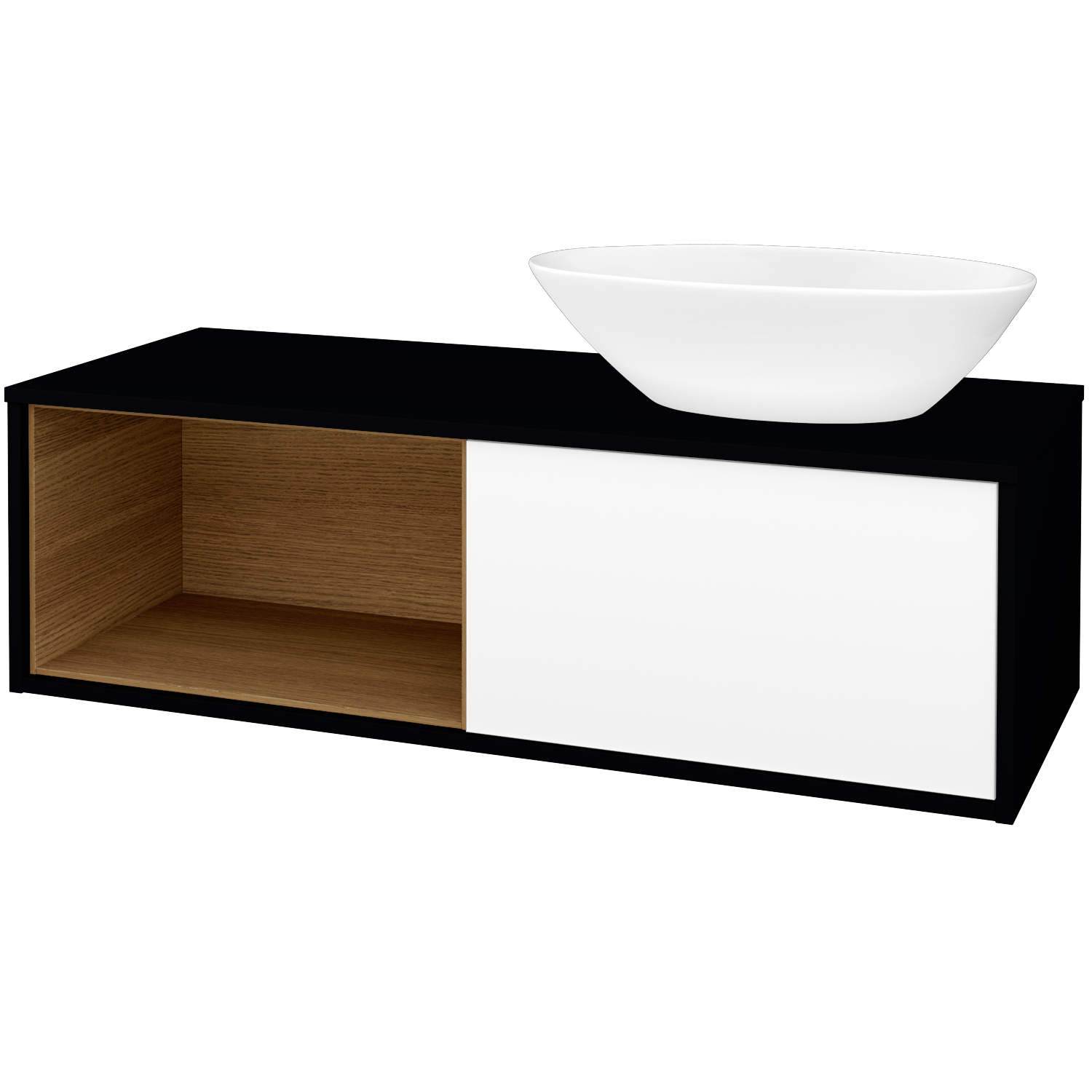 Umyvadlová skříňka (1200x370x500) s 1 zásuvkou, nikou vpravo s LED osvětlením uvnitř a keramickým…