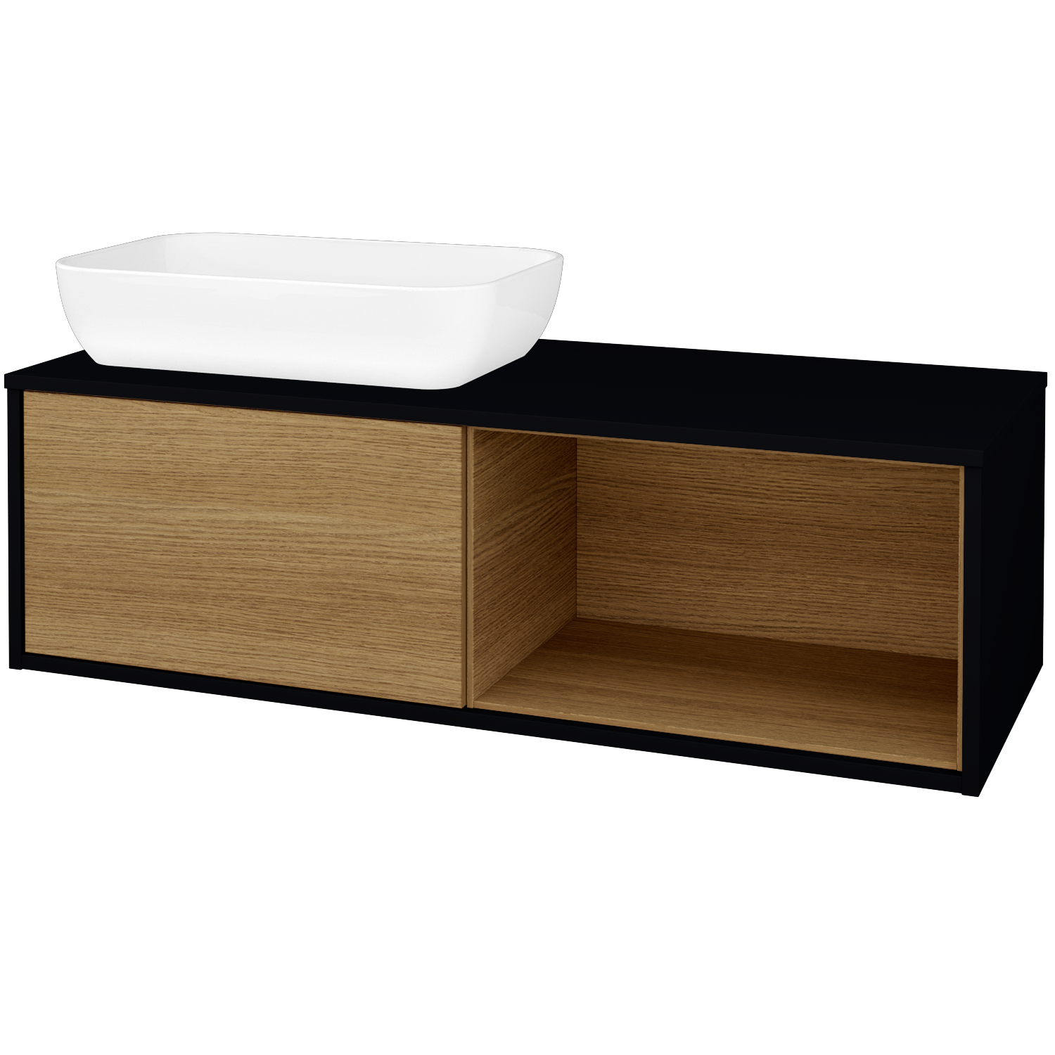 Umyvadlová skříňka (1200x370x500) s 1 zásuvkou, nikou vpravo s LED osvětlením uvnitř a keramickým umyvadlem Felis 1 Zobrazit více
