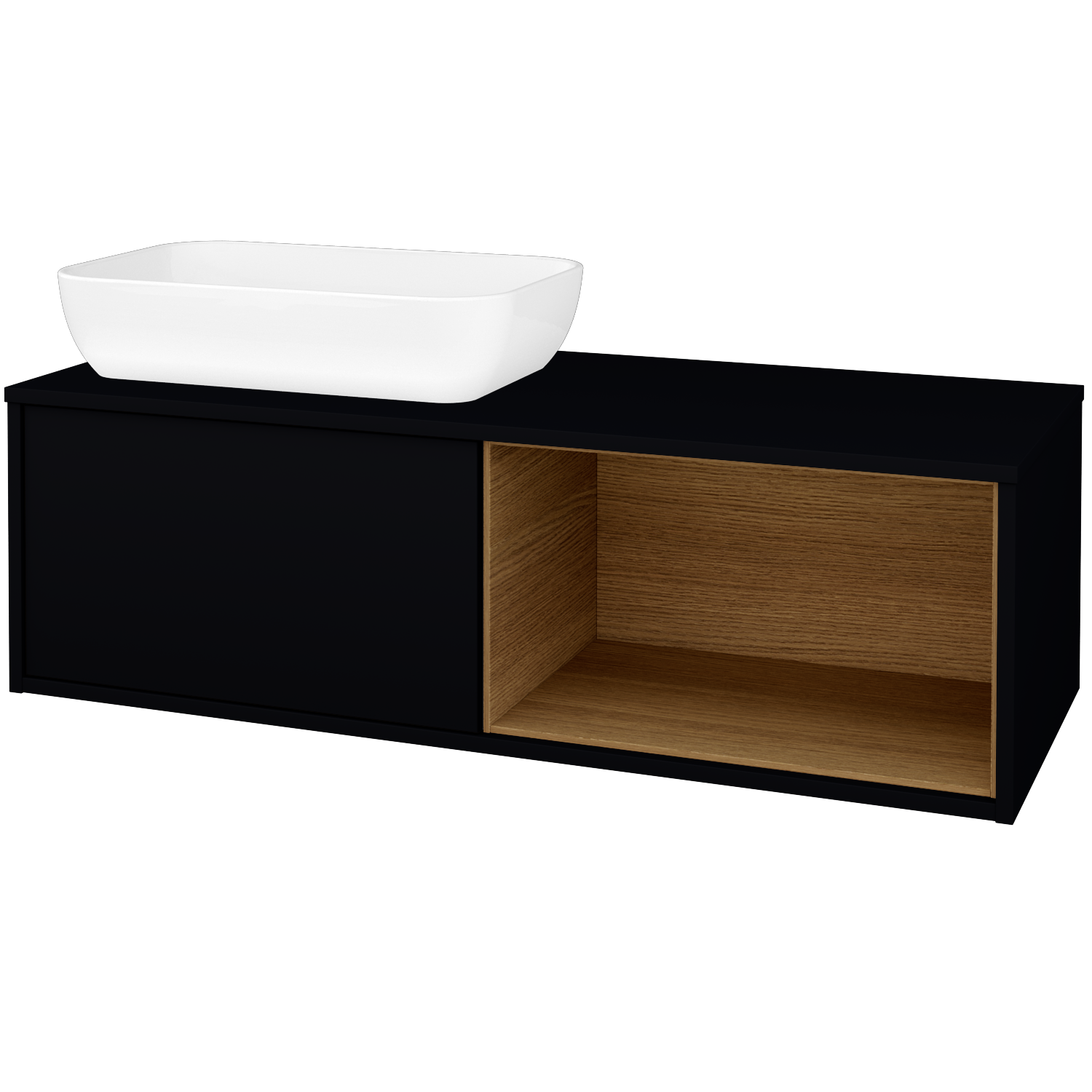 Umyvadlová skříňka (1200x370x500) s 1 zásuvkou, nikou vpravo s LED osvětlením uvnitř a keramickým umyvadlem Felis 1 Zobrazit více
