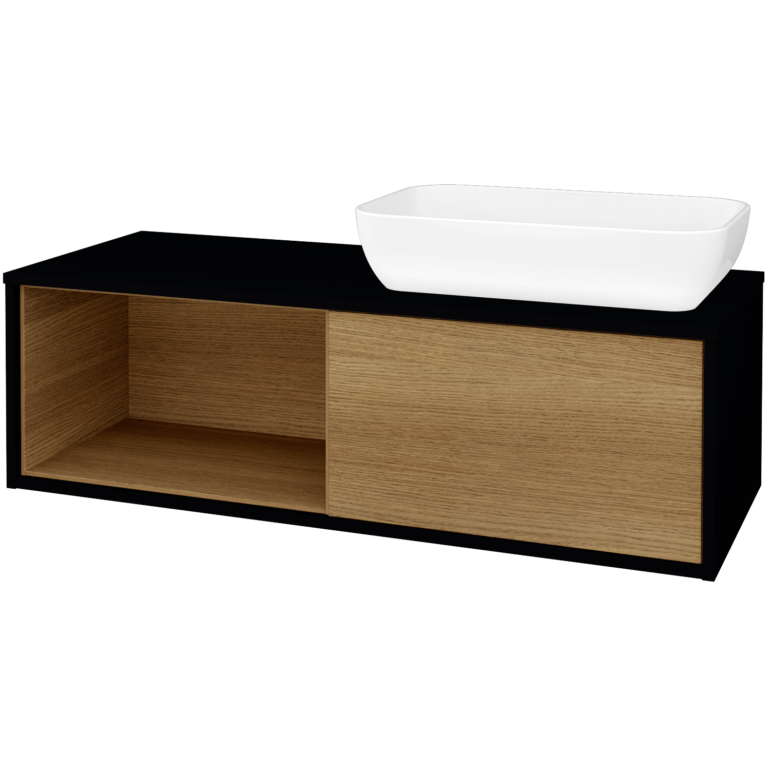 Umyvadlová skříňka (1200x370x500) s 1 zásuvkou, nikou vlevo s LED osvětlením uvnitř a keramickým umyvadlem Felis 1 Zobrazit více