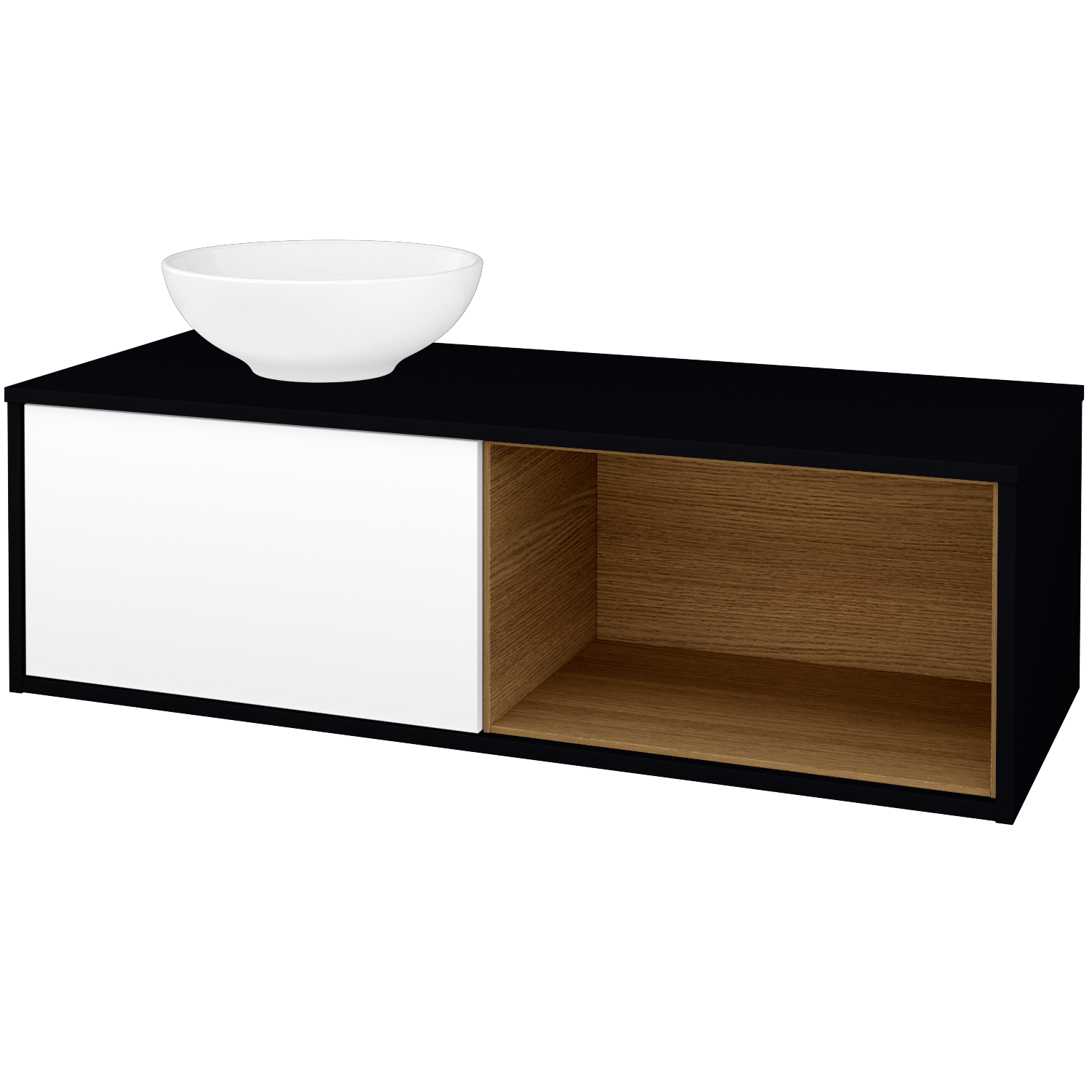 Umyvadlová skříňka (1200x370x500) s 1 zásuvkou, nikou vpravo s LED osvětlením uvnitř a keramickým umyvadlem Nikolo 1 Zobrazit více
