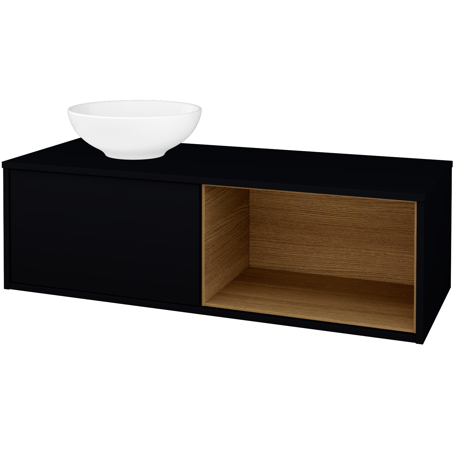 Umyvadlová skříňka (1200x370x500) s 1 zásuvkou, nikou vpravo s LED osvětlením uvnitř a keramickým umyvadlem Nikolo 1 Zobrazit více