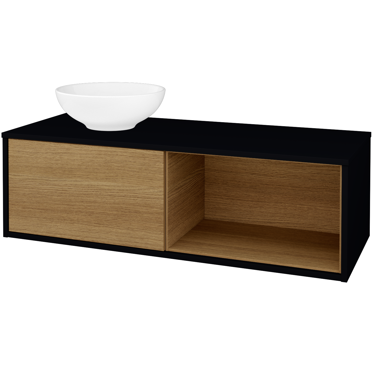 Umyvadlová skříňka (1200x370x500) s 1 zásuvkou, nikou vpravo s LED osvětlením uvnitř a keramickým umyvadlem Nikolo 1 Zobrazit více