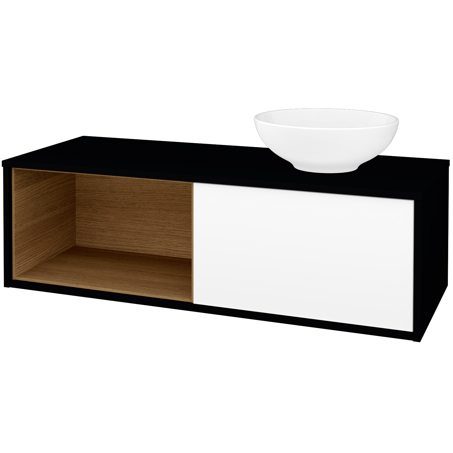 Umyvadlová skříňka (1200x370x500) s 1 zásuvkou, nikou vlevo s LED osvětlením uvnitř a keramickým umyvadlem Nikolo 1 Zobrazit více
