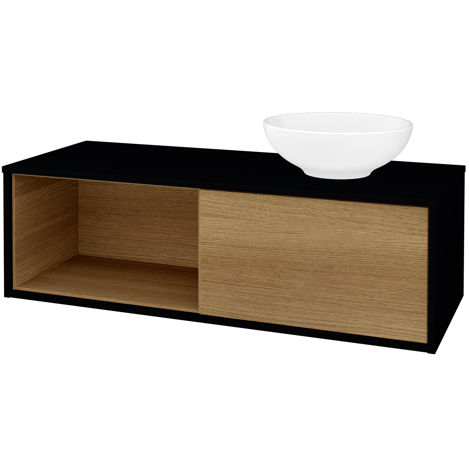 Umyvadlová skříňka (1200x370x500) s 1 zásuvkou, nikou vlevo s LED osvětlením uvnitř a keramickým umyvadlem Nikolo 1 Zobrazit více