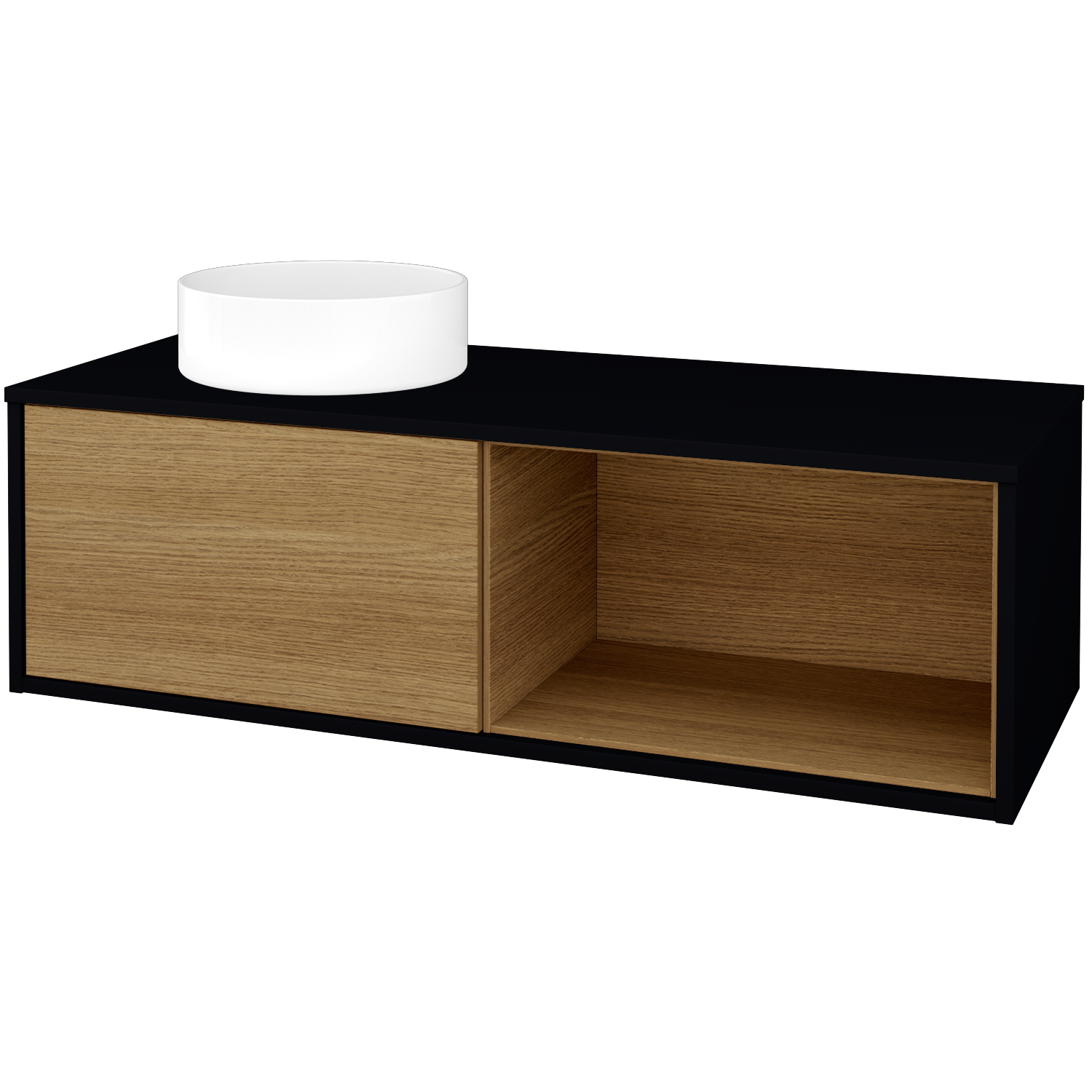 Umyvadlová skříňka (1200x370x500) s 1 zásuvkou, nikou vpravo s LED osvětlením uvnitř a keramickým umyvadlem Circo Zobrazit více
