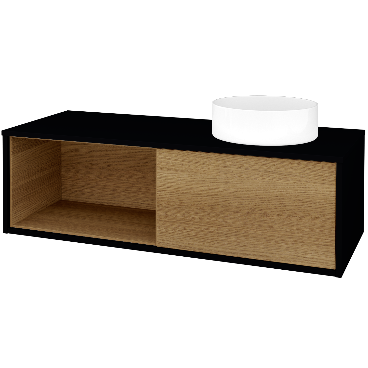 Umyvadlová skříňka (1200x370x500) s 1 zásuvkou, nikou vpravo s LED osvětlením uvnitř a keramickým…