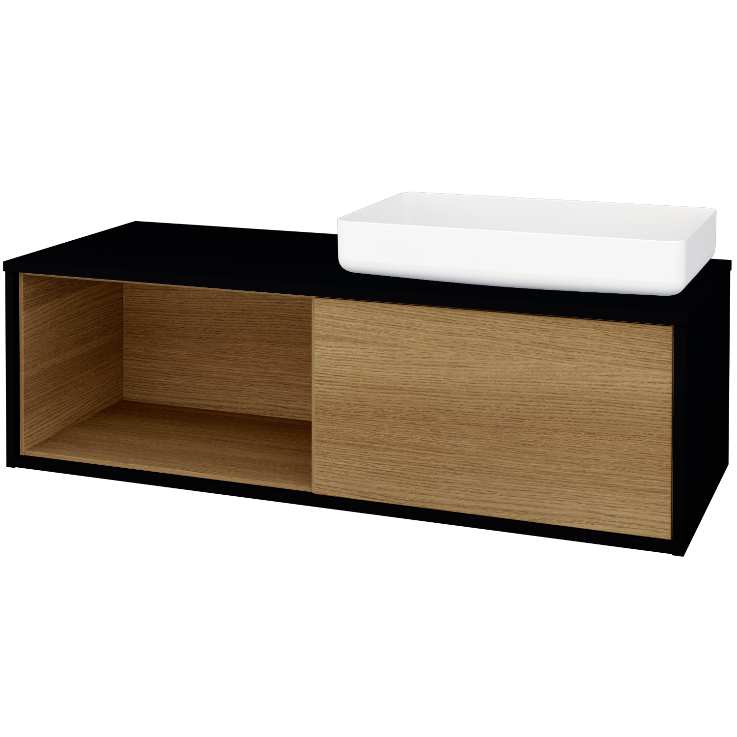 Umyvadlová skříňka (1200x370x500) s 1 zásuvkou, nikou vlevo s LED osvětlením uvnitř a pod umyvadlo Kaldewei Miena (není v ceně) Zobrazit více