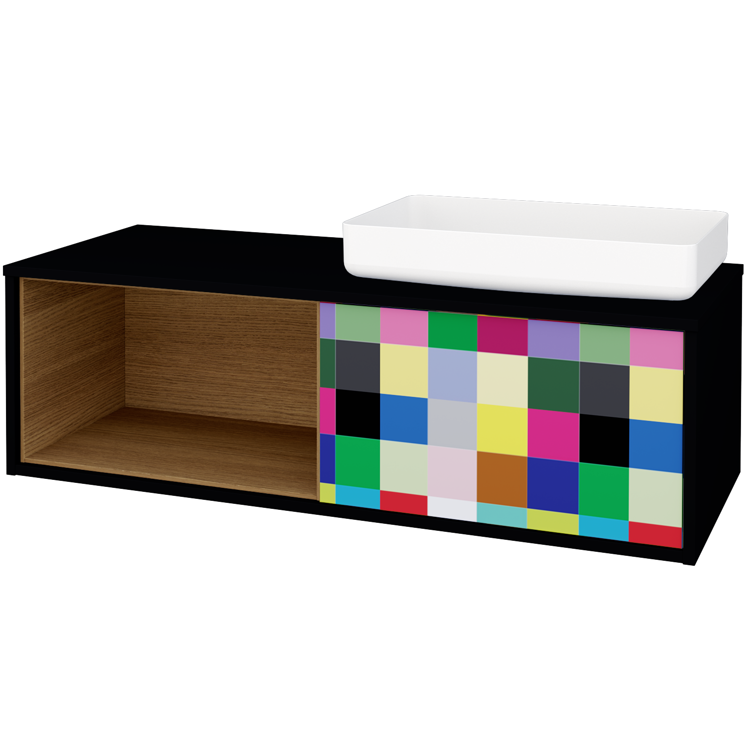 Umyvadlová skříňka (1200x370x500) s 1 zásuvkou, nikou vlevo s LED osvětlením uvnitř a pod umyvadlo Kaldewei Miena (není v ceně) Zobrazit více