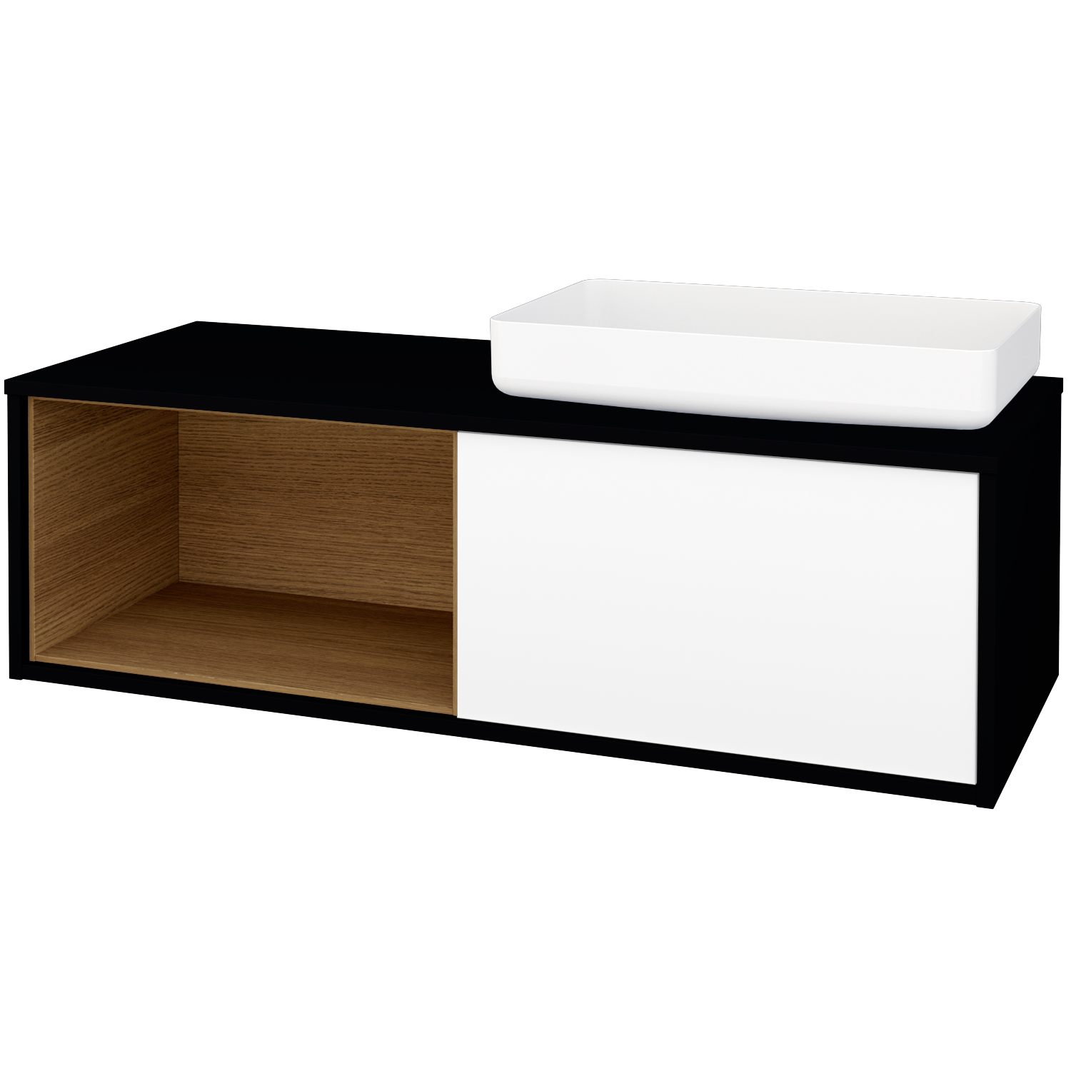 Umyvadlová skříňka (1200x370x500) s 1 zásuvkou, nikou vlevo s LED osvětlením uvnitř a pod umyvadlo Kaldewei Miena (není v ceně) Zobrazit více