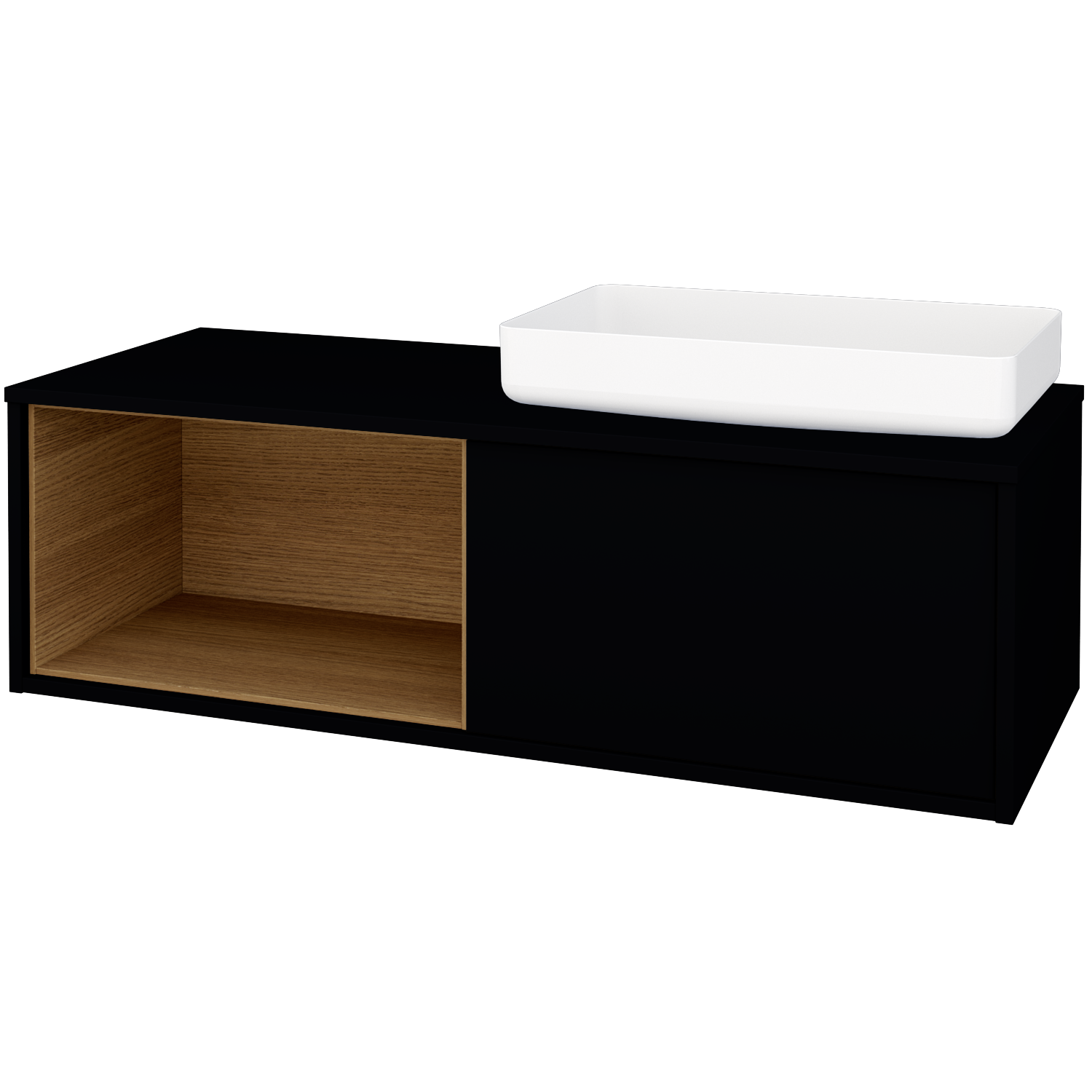 Umyvadlová skříňka (1200x370x500) s 1 zásuvkou, nikou vlevo s LED osvětlením uvnitř a pod umyvadlo Kaldewei Miena (není v ceně) Zobrazit více
