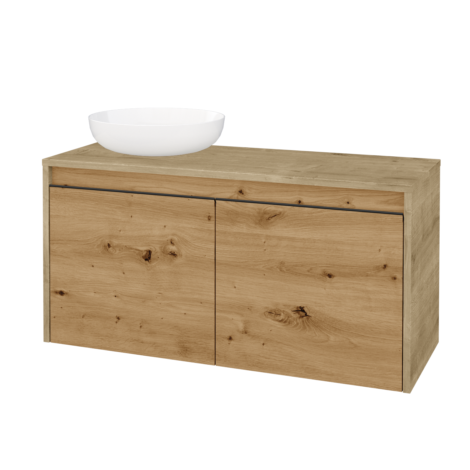 Umyvadlová skříňka (1200x420x445) se 2 zásuvkami a keramickým umyvadlem Pura 120 se 2 otvory pro…
