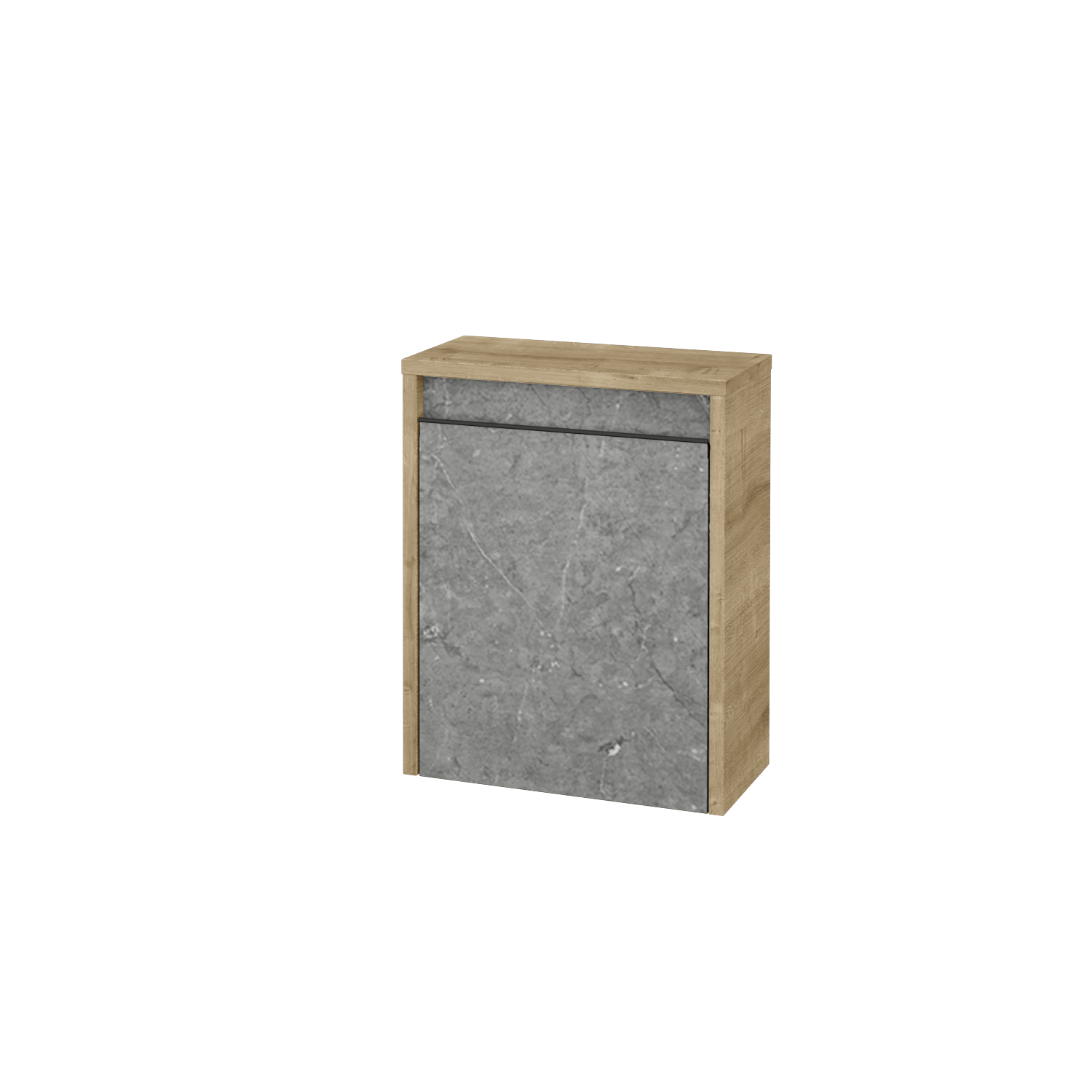 Skříňka je řešena jako jednodveřová s možností volby orientace dvířek vpravo nebo vlevo, takže si ji snadno přizpůsobíte svým potřebám i uspořádání prostoru v koupelně. Dvířka se otevírají pomocí zafrézovaných kovových úchytek, které nenarušují čistý vzhled nábytku a zároveň zajišťují pohodlné a snadné otevírání.