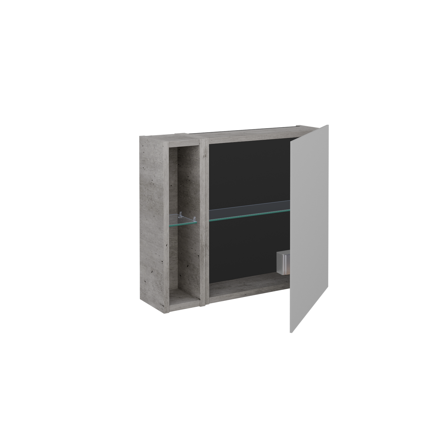 Jednodveřová zrcadlová skříňka (600x530x163) s nikou vlevo a 2 skleněnými policemi, vypínačem a zásuvkou Zobrazit více