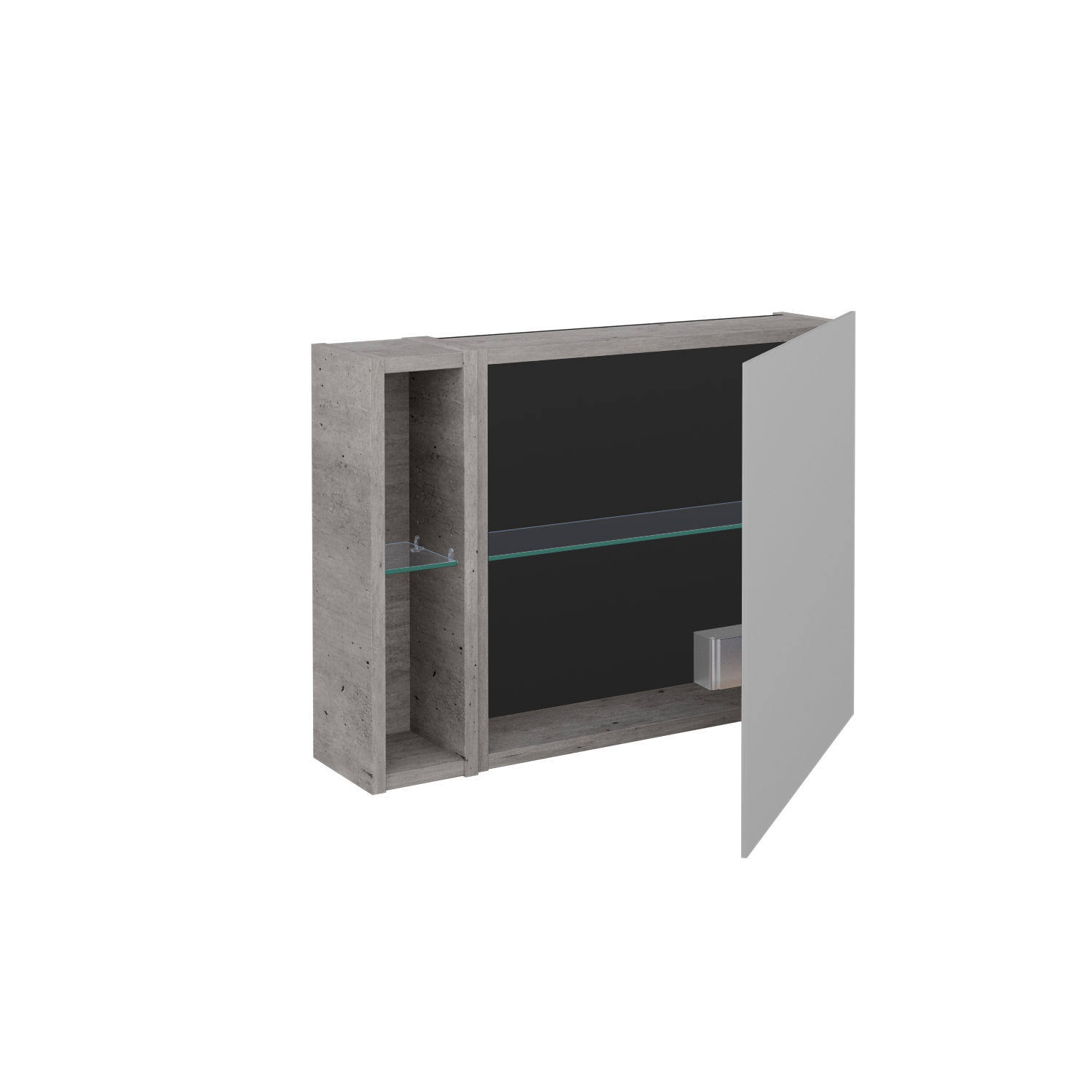 Jednodveřová zrcadlová skříňka (700x530x163) s nikou vlevo a 2 skleněnými policemi, vypínačem a zásuvkou Zobrazit více