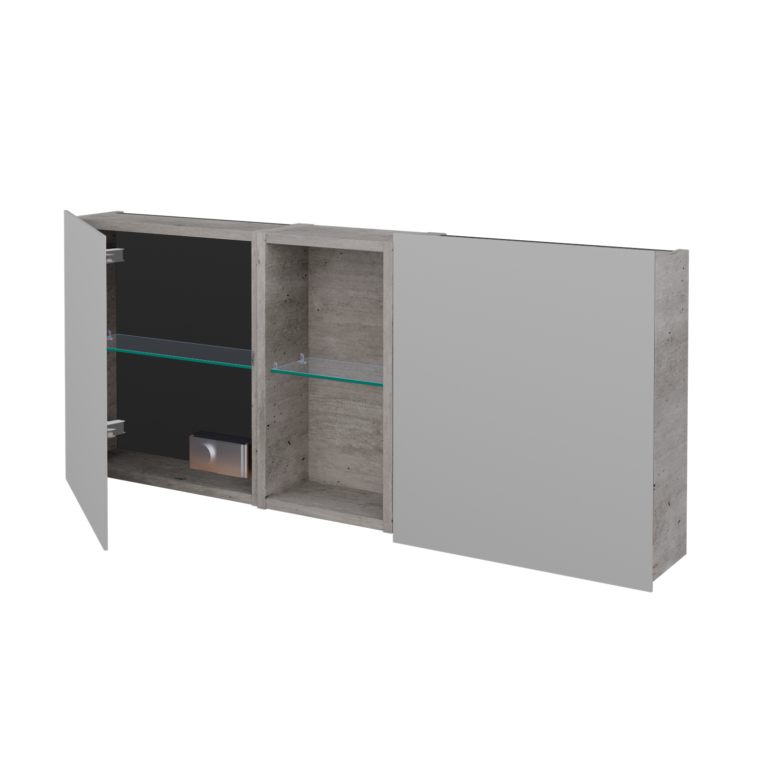 Dvoudveřová zrcadlová skříňka (1200x530x163) s nikou vpravo a 3 skleněnými policemi, vypínačem a zásuvkou Zobrazit více