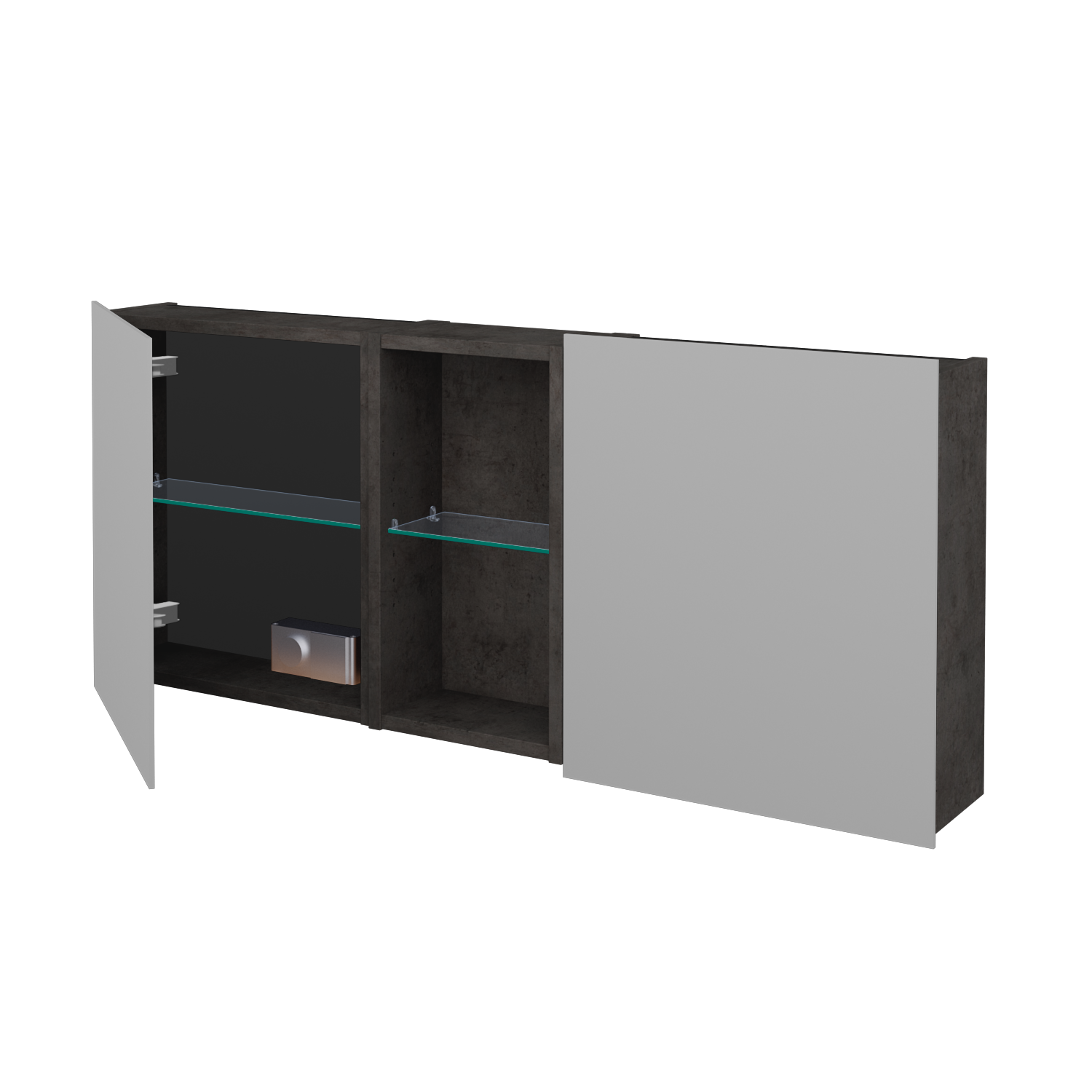 Dvoudveřová zrcadlová skříňka (1200x530x163) s nikou uprostřed a 3 skleněnými policemi, vypínačem a zásuvkou Zobrazit více