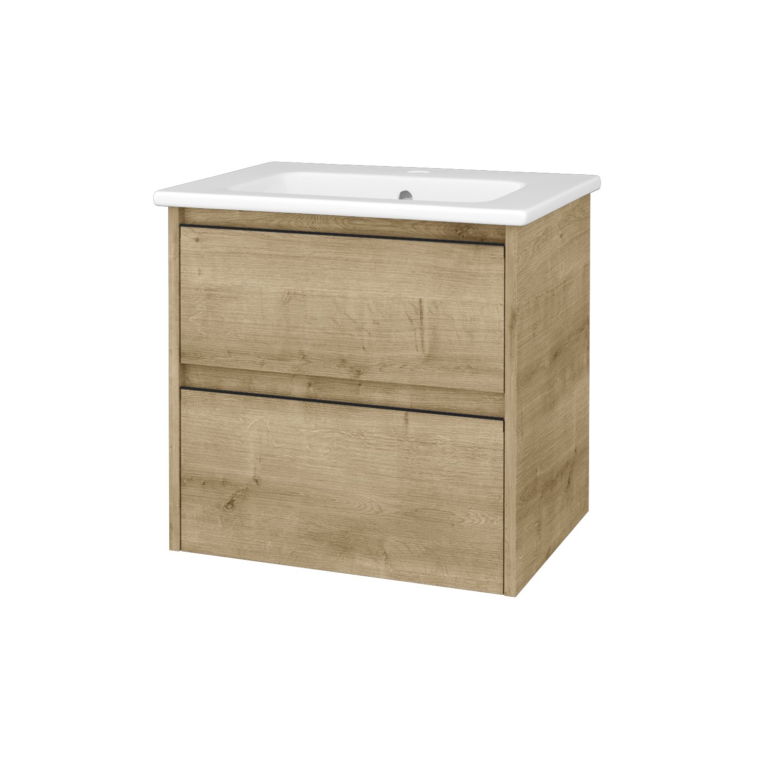 Umyvadlová skříňka (660x560x438) se 2 zásuvkami a keramickým umyvadlem Glance 70