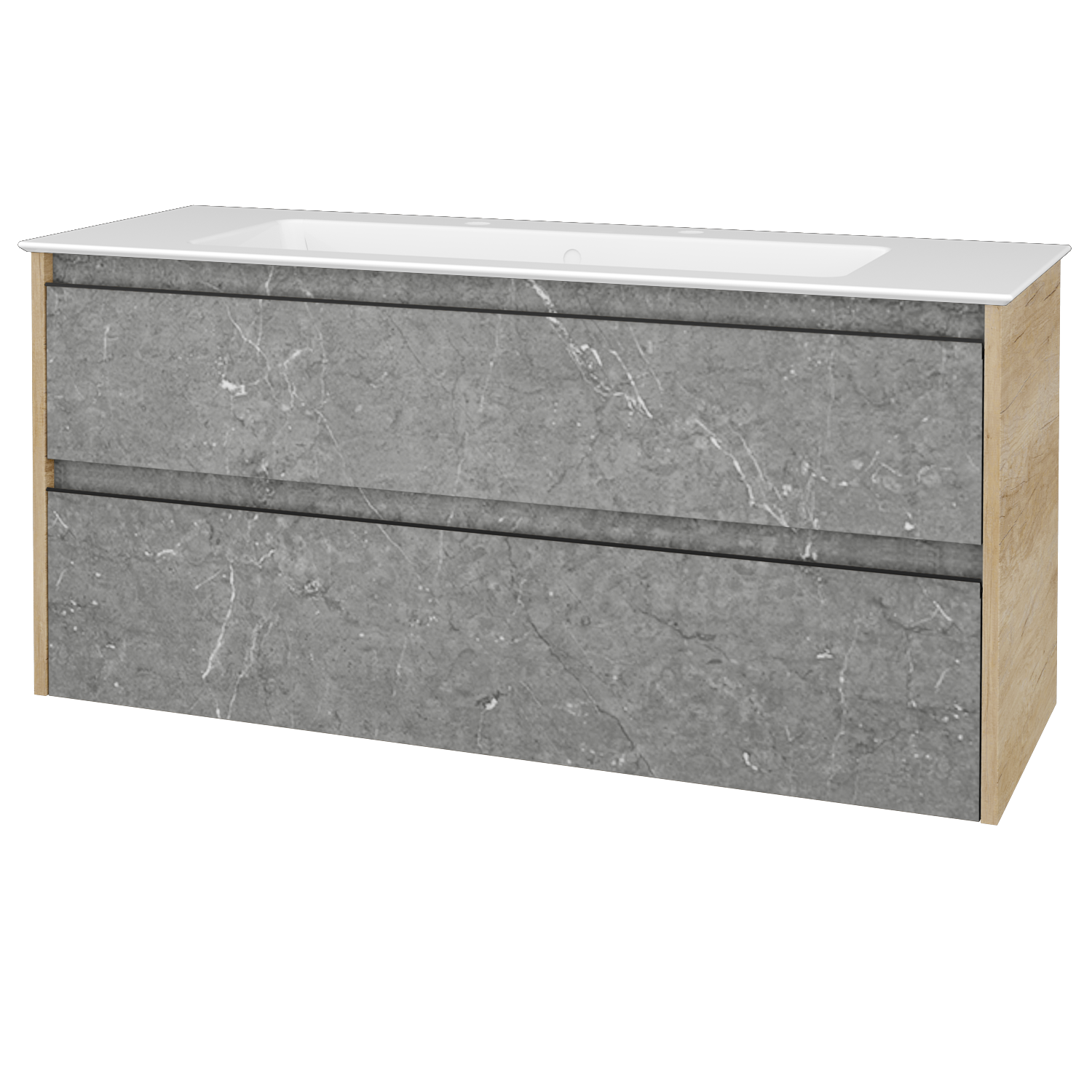 Umyvadlová skříňka (1200x390x445) se 2 zásuvkami pod sebou a keramickým umyvadlem Pura 120 se 2…