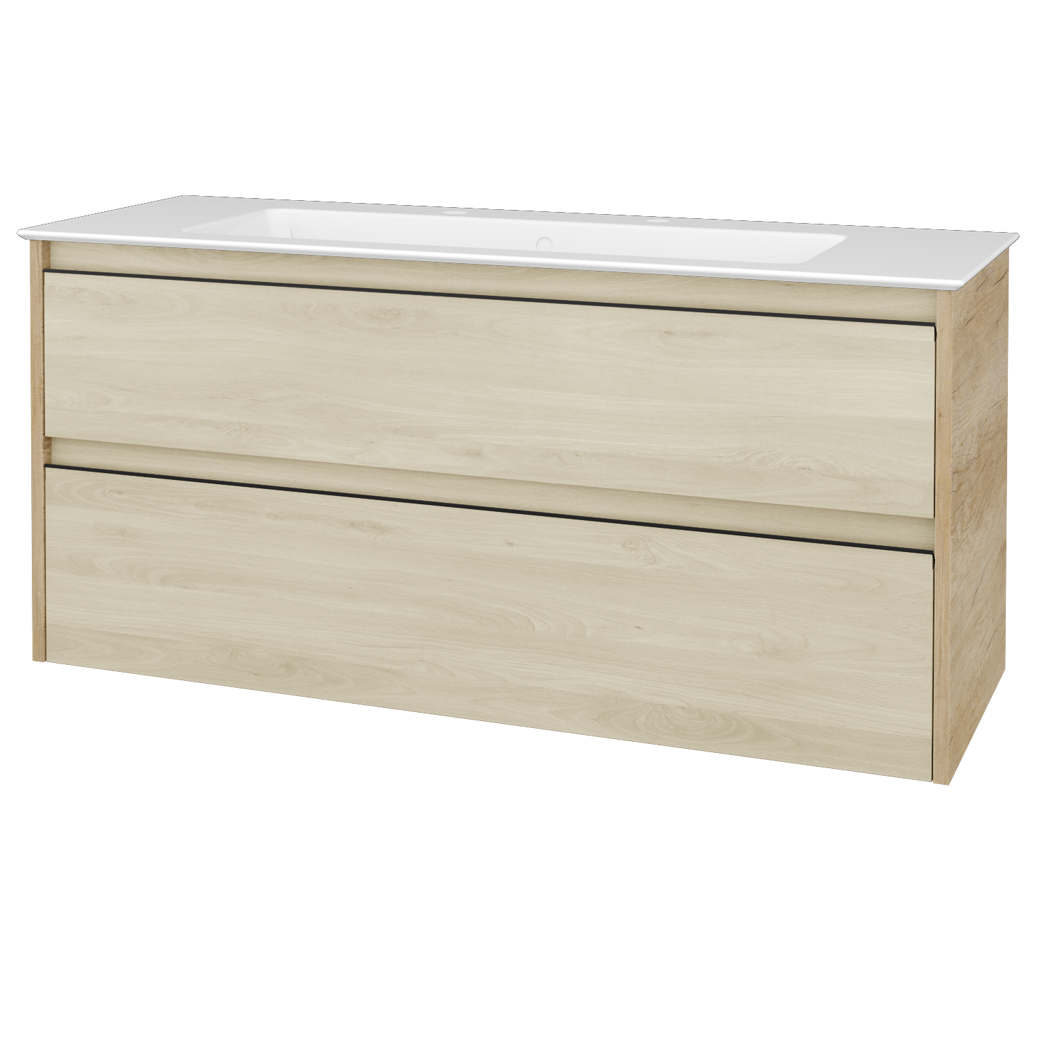 Umyvadlová skříňka (1200x390x445) se 2 zásuvkami pod sebou a keramickým umyvadlem Pura 120 bez…
