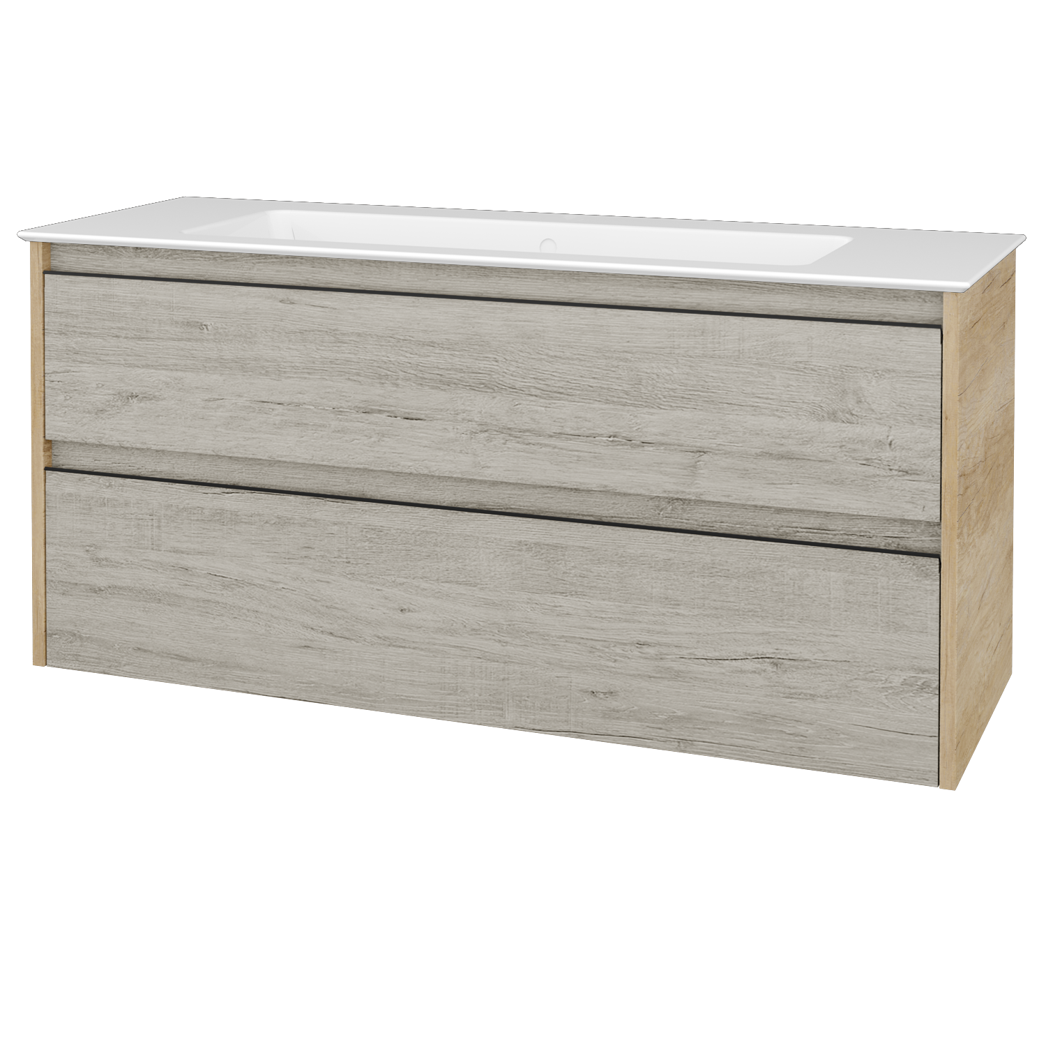Umyvadlová skříňka (1200x390x445) se 2 zásuvkami pod sebou a keramickým umyvadlem Pura 120 bez otvoru pro baterii Zobrazit více