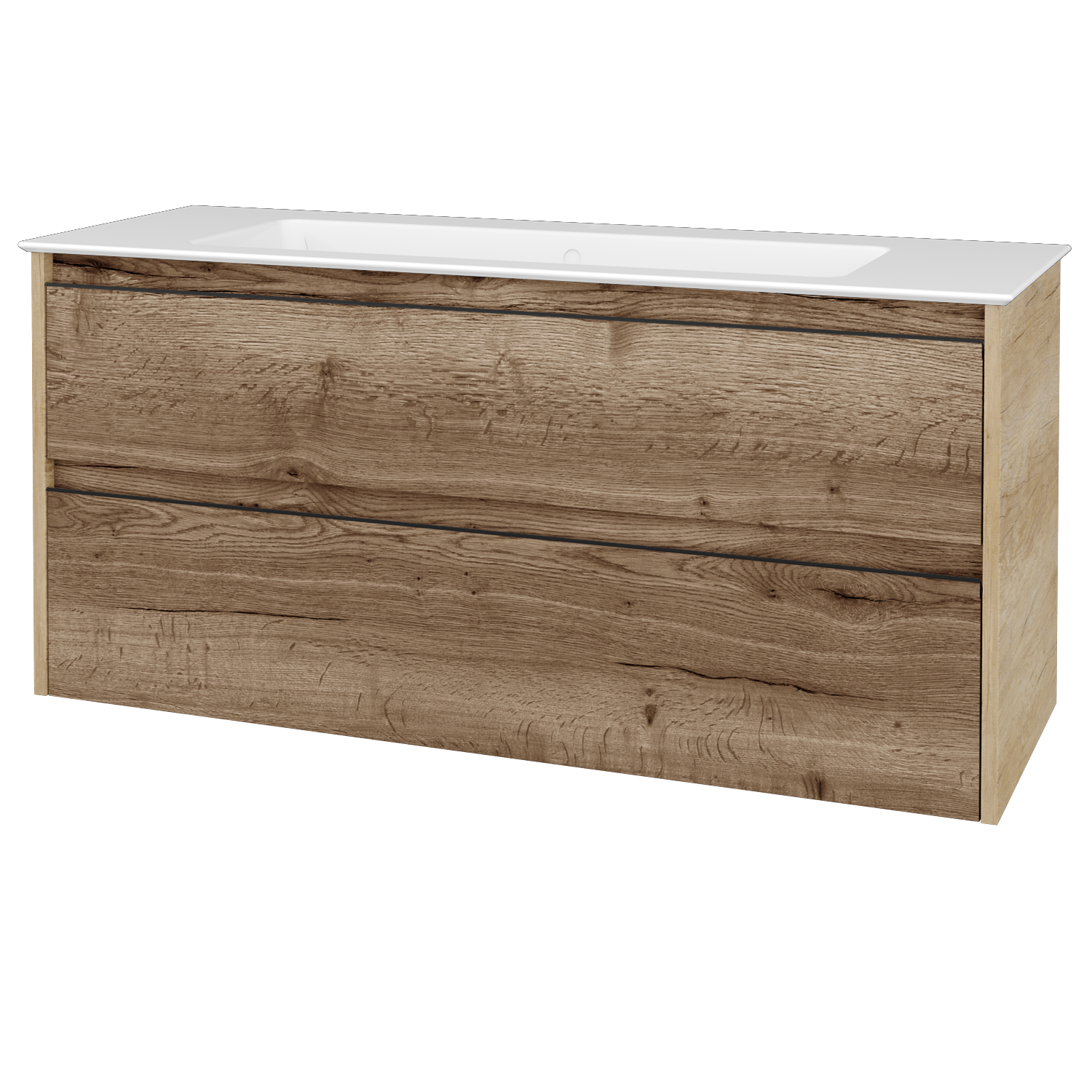 Umyvadlová skříňka (1200x390x445) se 2 zásuvkami pod sebou a keramickým umyvadlem Pura 120 bez otvoru pro baterii Zobrazit více