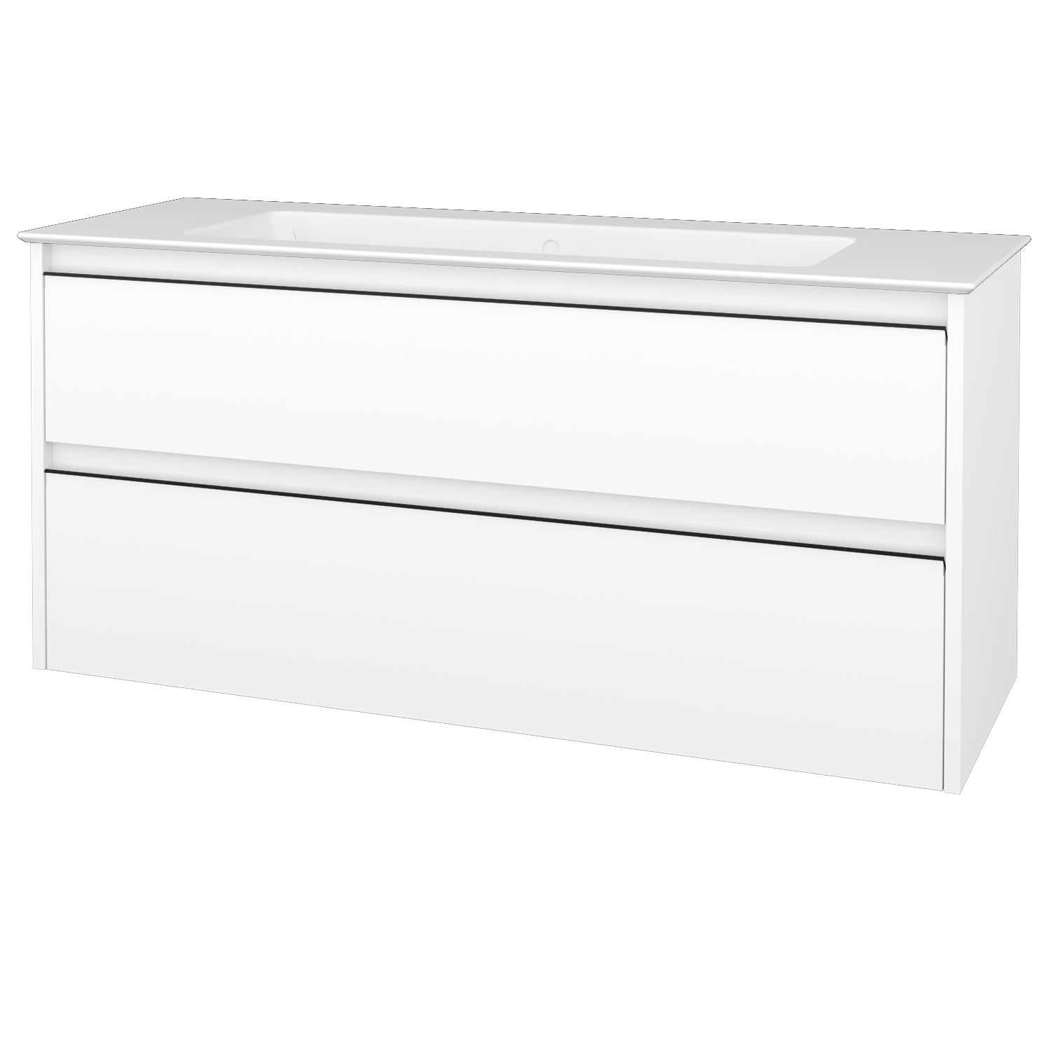 Umyvadlová skříňka (1200x390x445) se 2 zásuvkami pod sebou a keramickým umyvadlem Pura 120 bez otvoru pro baterii Zobrazit více