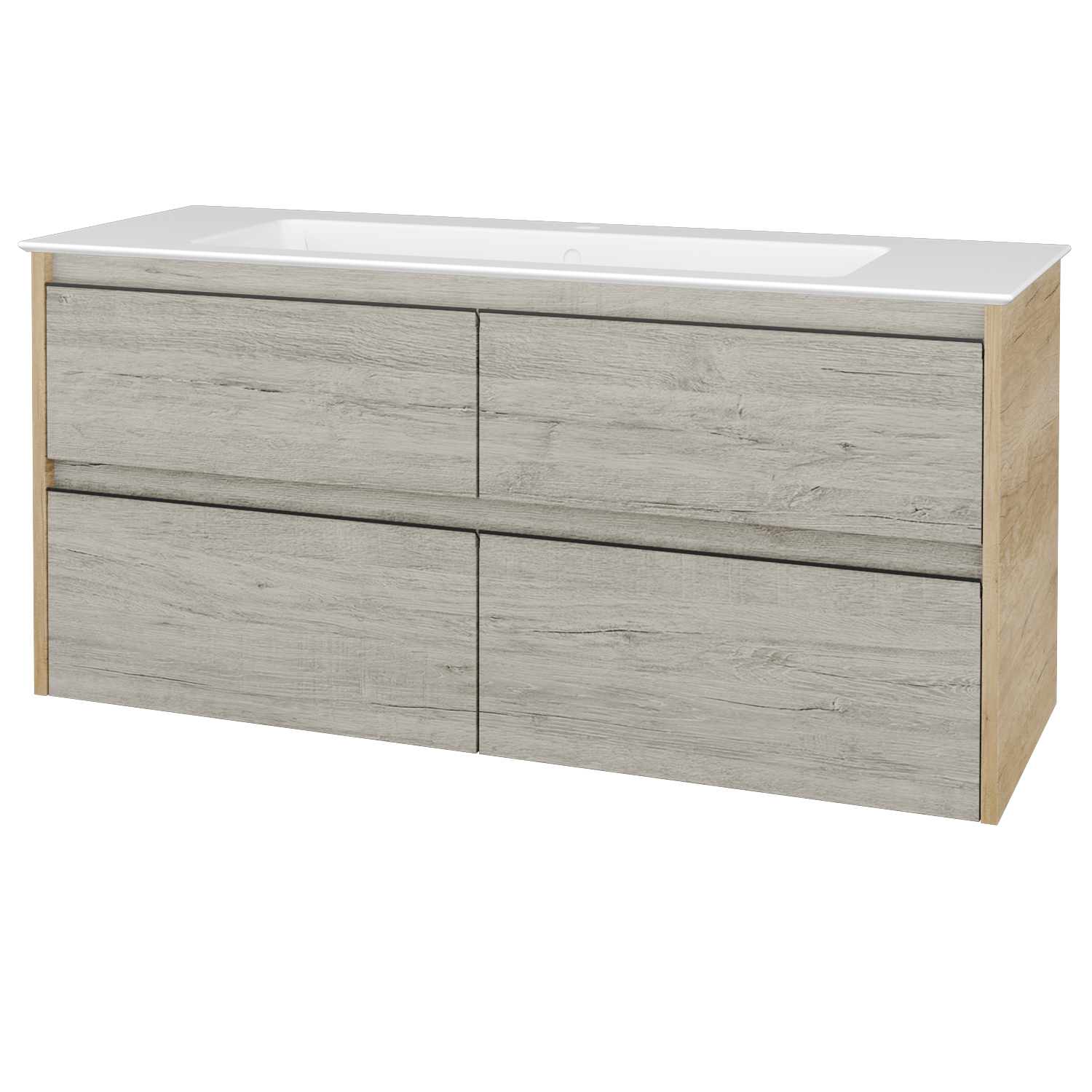 Umyvadlová skříňka (1200x560x445) se 2 zásuvkami a keramickým umyvadlem Pura 120