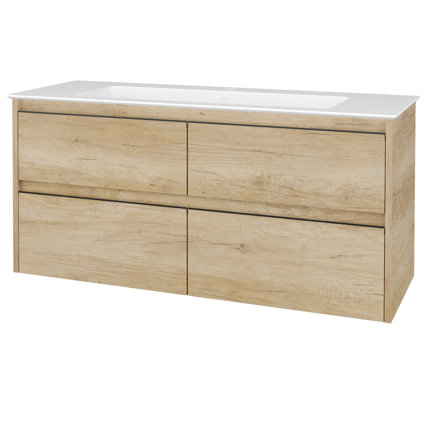 Umyvadlová skříňka (1200x390x445) se 4 zásuvkami pod sebou a keramickým umyvadlem Pura 120 s otvorem pro 1 baterii Zobrazit více