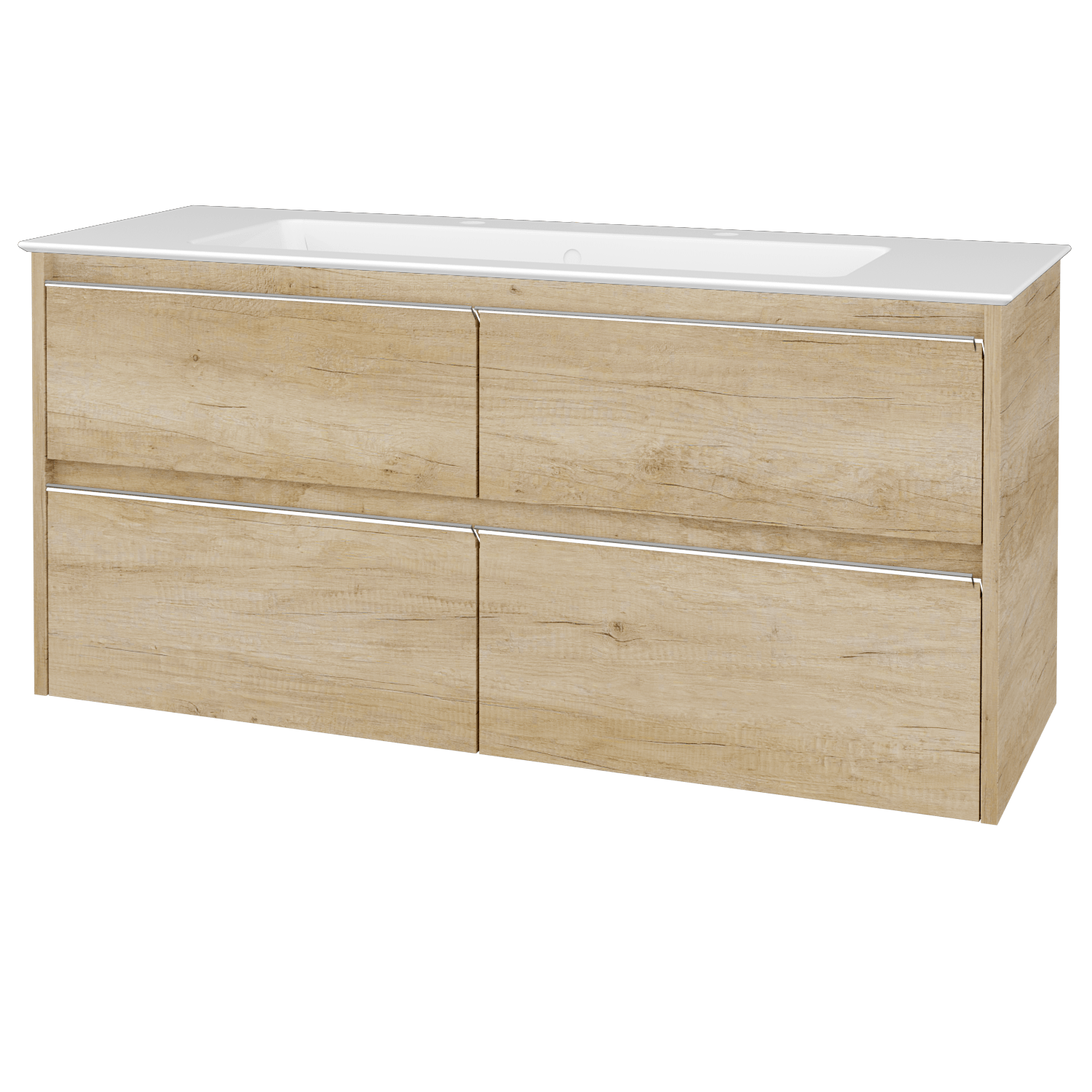 Umyvadlová skříňka (1200x390x445) se 4 zásuvkami pod sebou a keramickým umyvadlem Pura 120 se 2 otvory pro baterii Zobrazit více