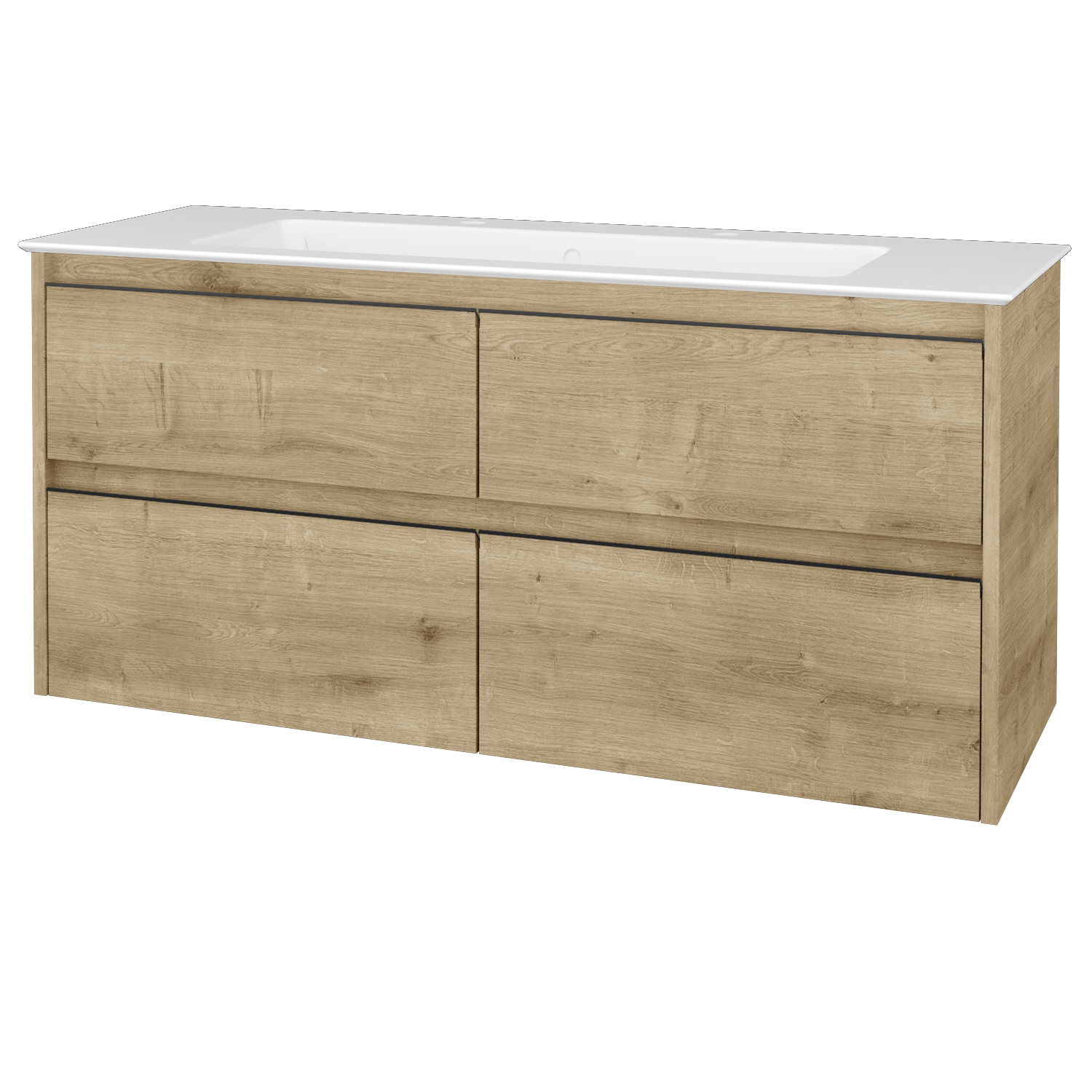 Umyvadlová skříňka (1200x560x445) se 4 zásuvkami pod sebou a keramickým umyvadlem Pura 120 bez…