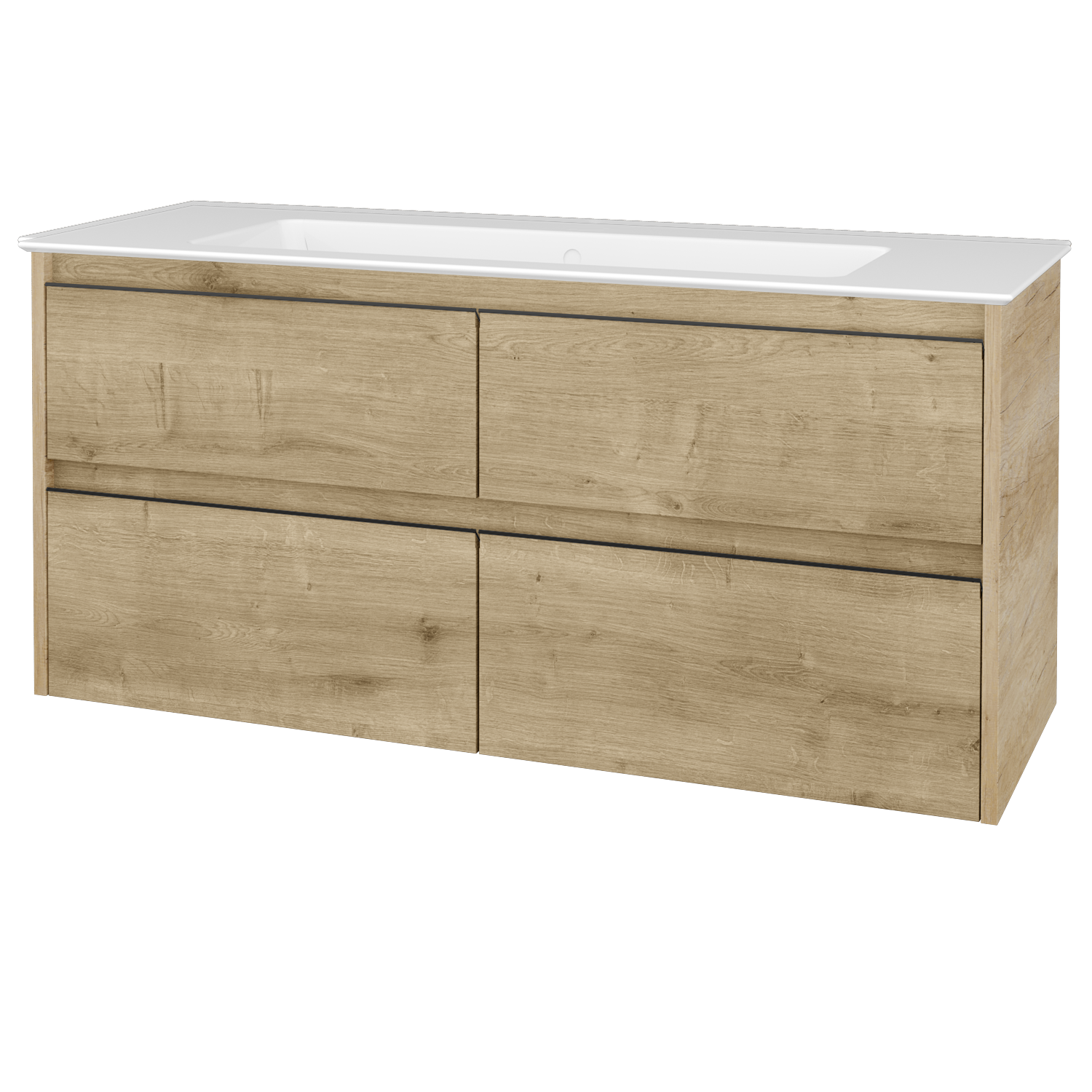 Umyvadlová skříňka (1200x560x445) se 4 zásuvkami pod sebou a keramickým umyvadlem Pura 120 bez otvoru pro baterii Zobrazit více