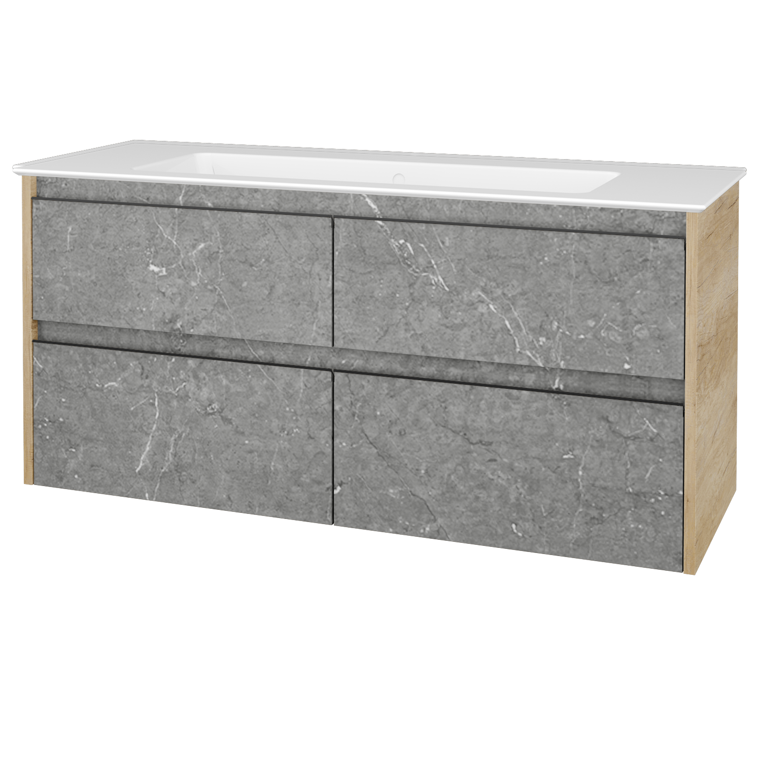 Umyvadlová skříňka (1200x560x445) se 4 zásuvkami pod sebou a keramickým umyvadlem Pura 120 bez otvoru pro baterii Zobrazit více