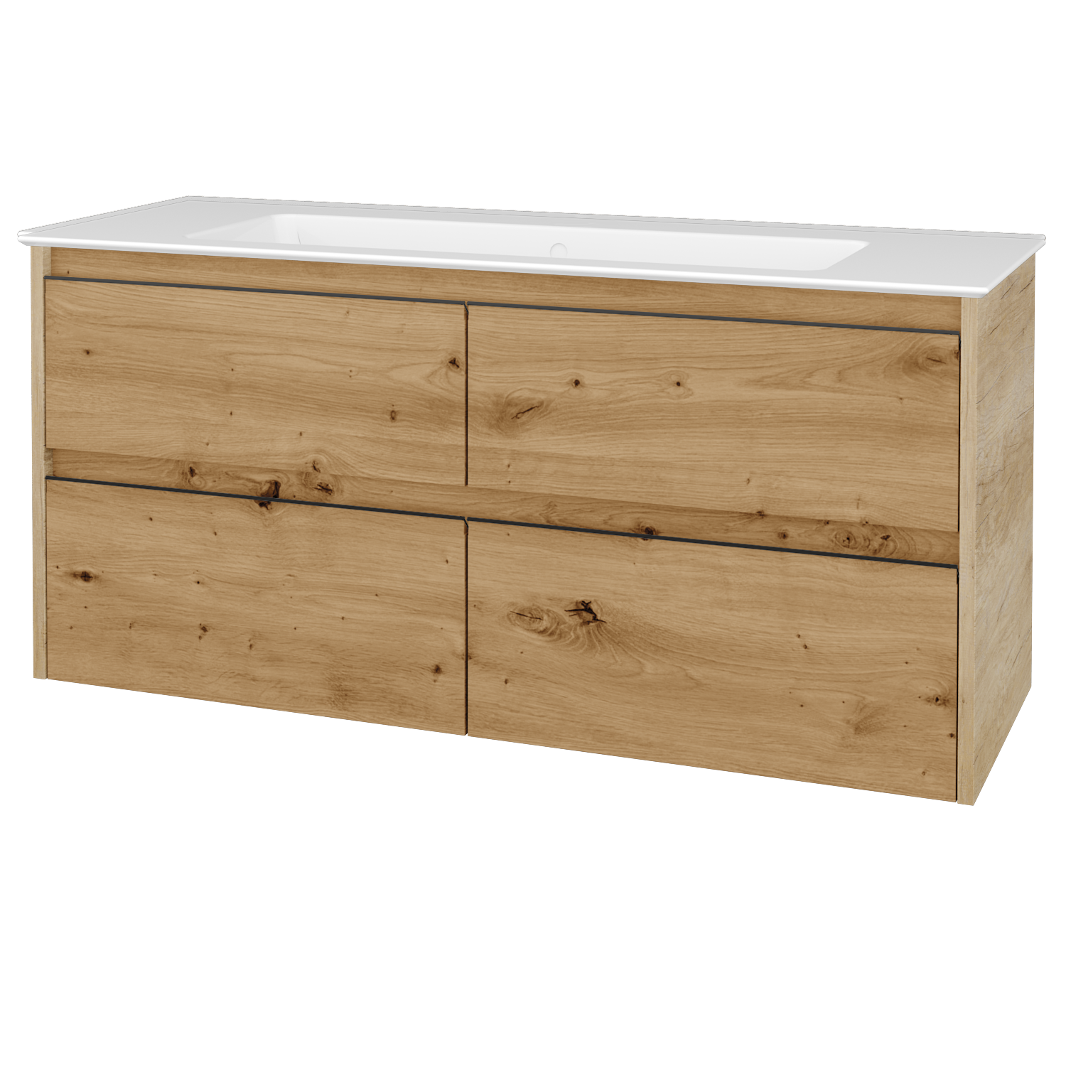 Umyvadlová skříňka (1200x500x445) se 2 zásuvkami a keramickým umyvadlem Pura 120