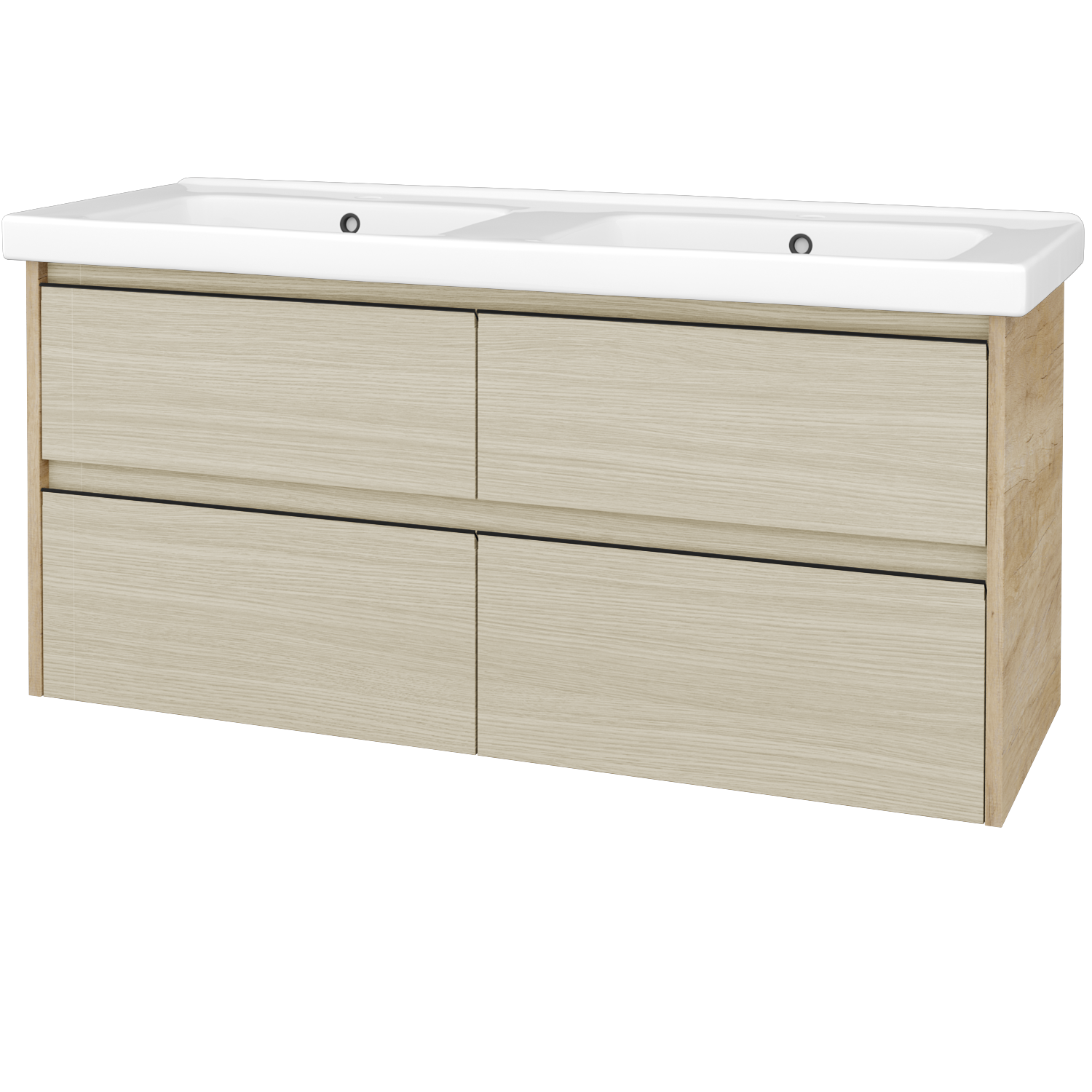 Umyvadlová skříňka (1210x560x445) se 4 zásuvkami a keramickým dvojumyvadlem Harmonia 125 Zobrazit více
