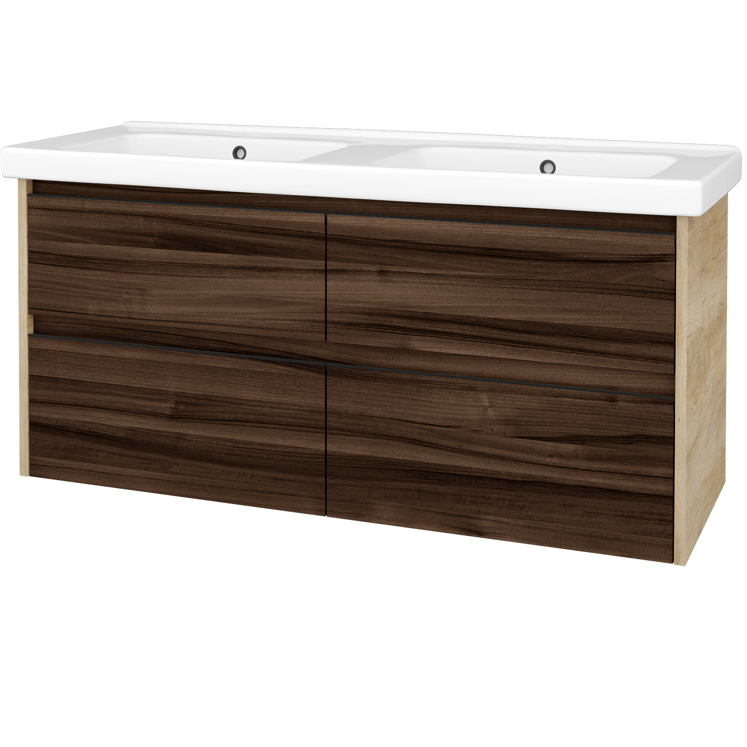 Umyvadlová skříňka (1210x560x445) se 4 zásuvkami a keramickým dvojumyvadlem Harmonia 125 Zobrazit více