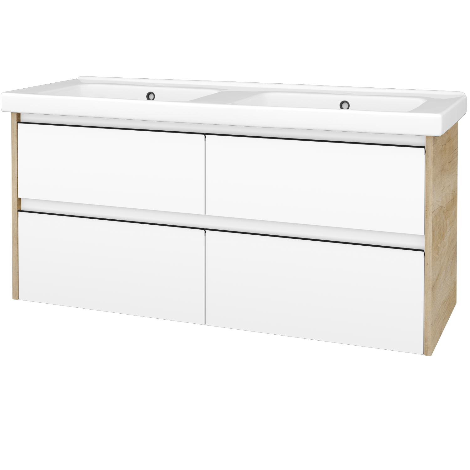 Umyvadlová skříňka (1210x560x445) se 4 zásuvkami a keramickým dvojumyvadlem Harmonia 125