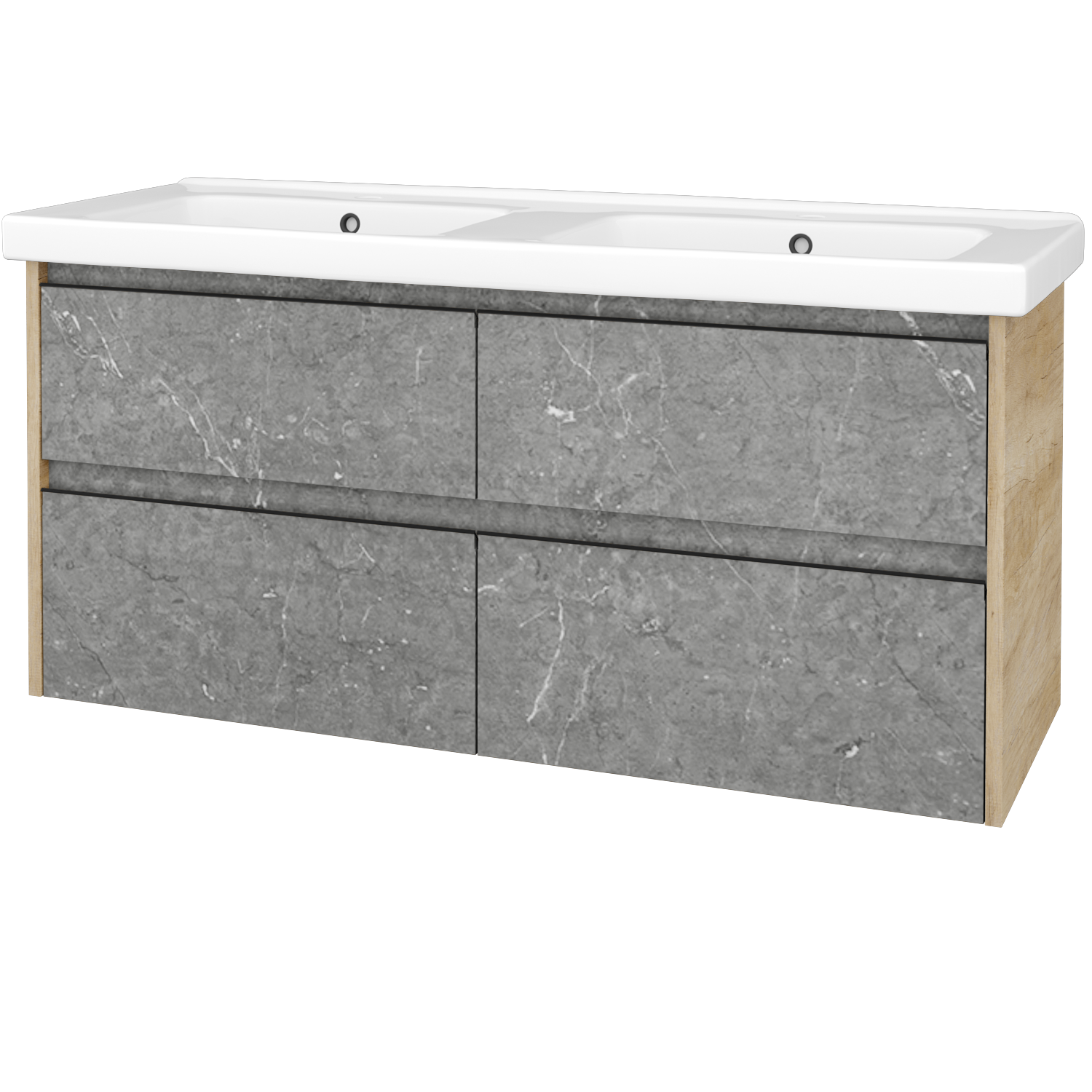 Umyvadlová skříňka (1210x560x445) se 4 zásuvkami a keramickým dvojumyvadlem Harmonia 125