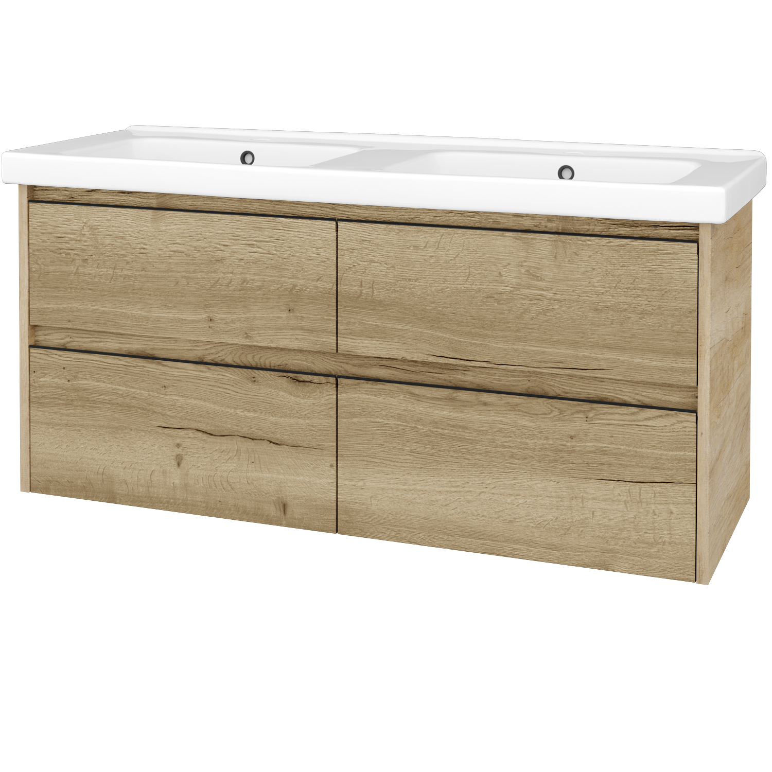 Umyvadlová skříňka (1210x560x445) se 4 zásuvkami a keramickým dvojumyvadlem Harmonia 125 Zobrazit více
