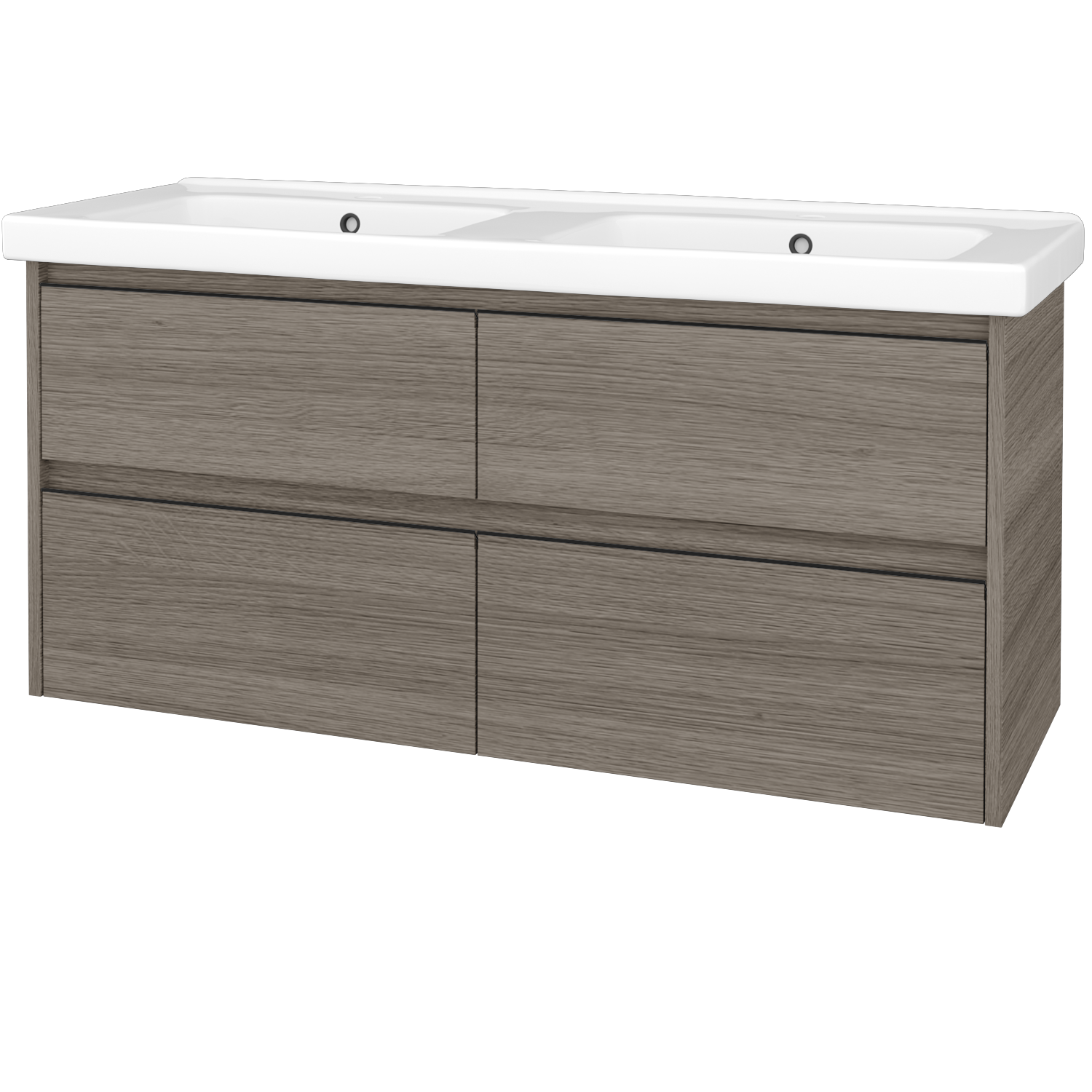 Umyvadlová skříňka (1210x560x445) se 4 zásuvkami a keramickým dvojumyvadlem Harmonia 125 Zobrazit více