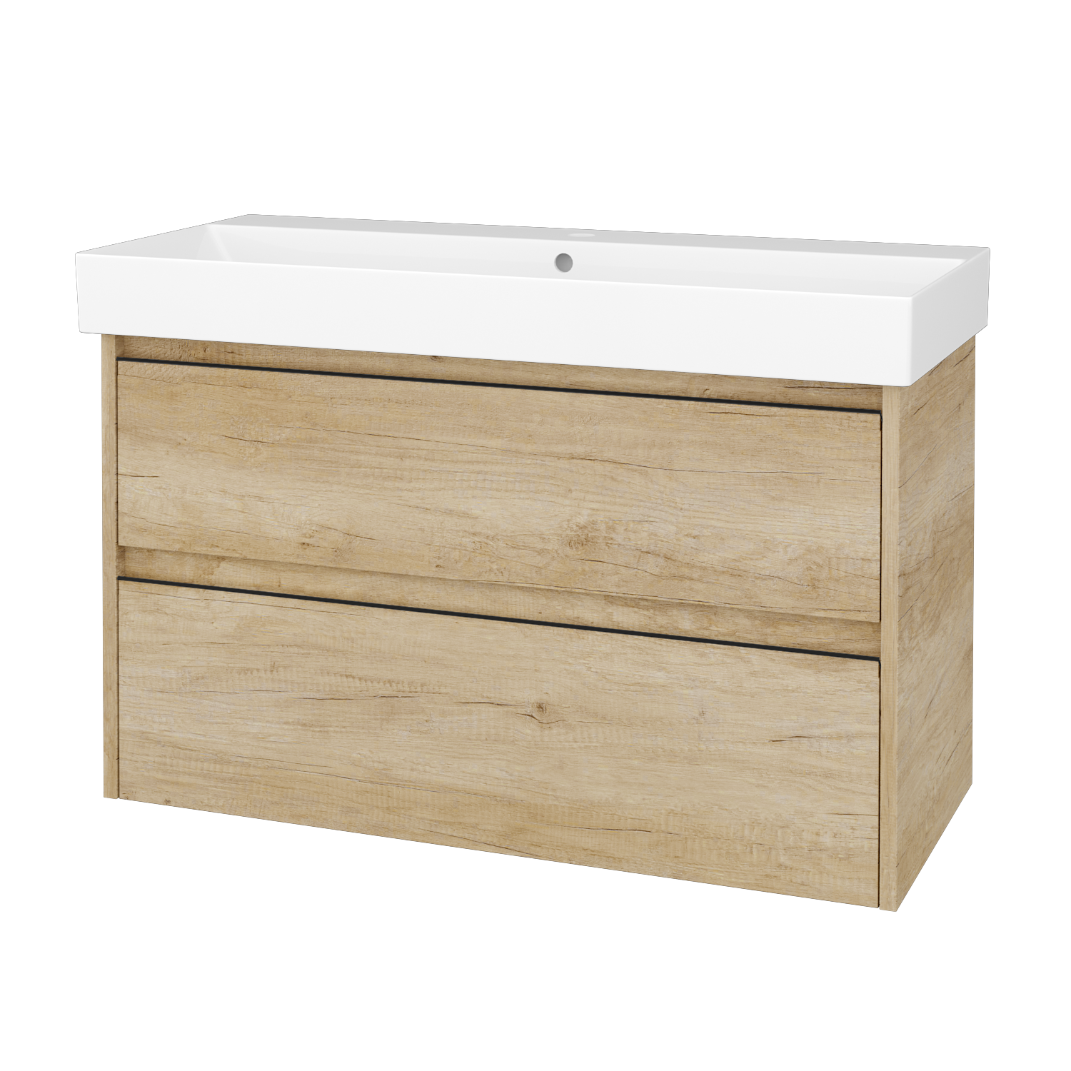 Umyvadlová skříňka (940x560x438) se 2 zásuvkami a keramickým umyvadlem Glance 100