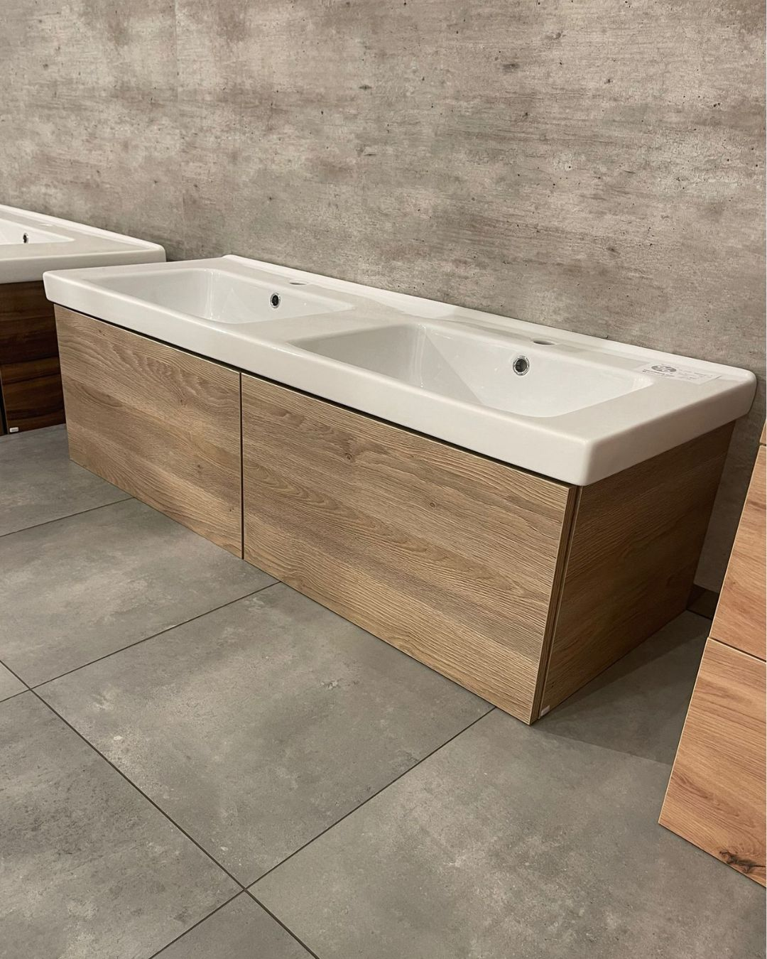Umyvadlová skříňka (1200x560x445) se 2 zásuvkami a keramickým umyvadlem Pura 120 se 2 otvory pro…
