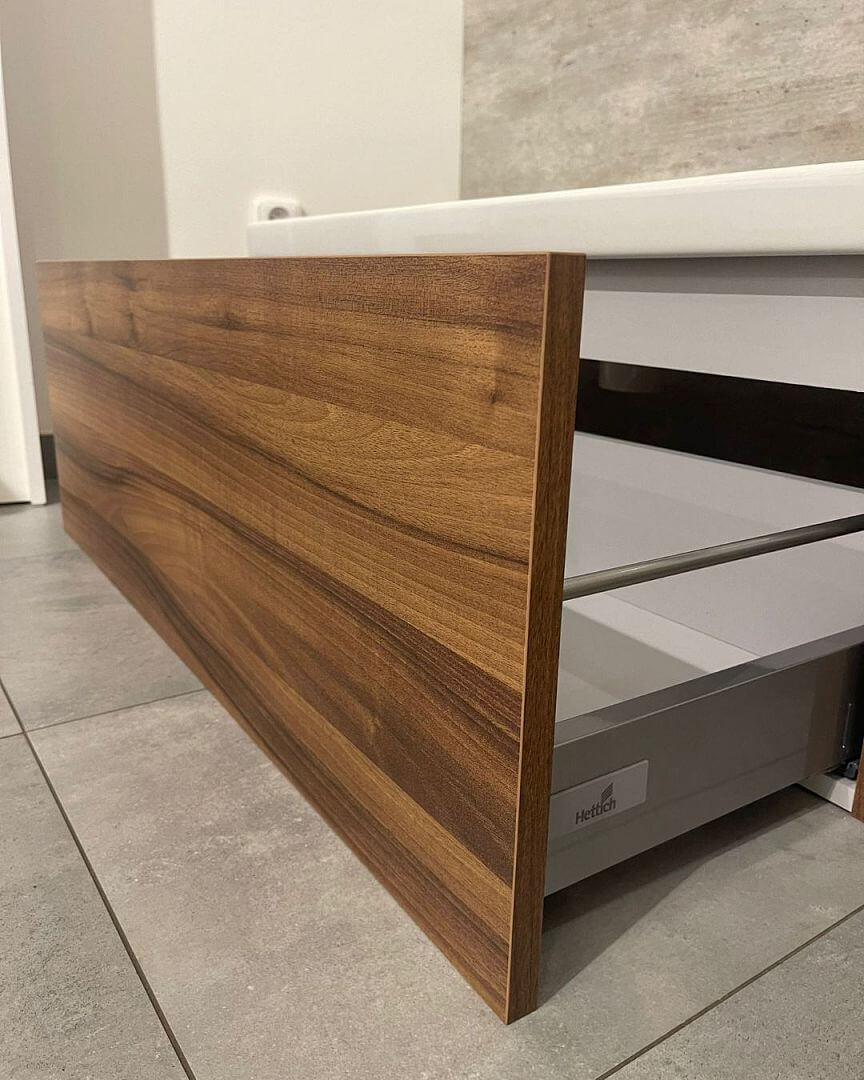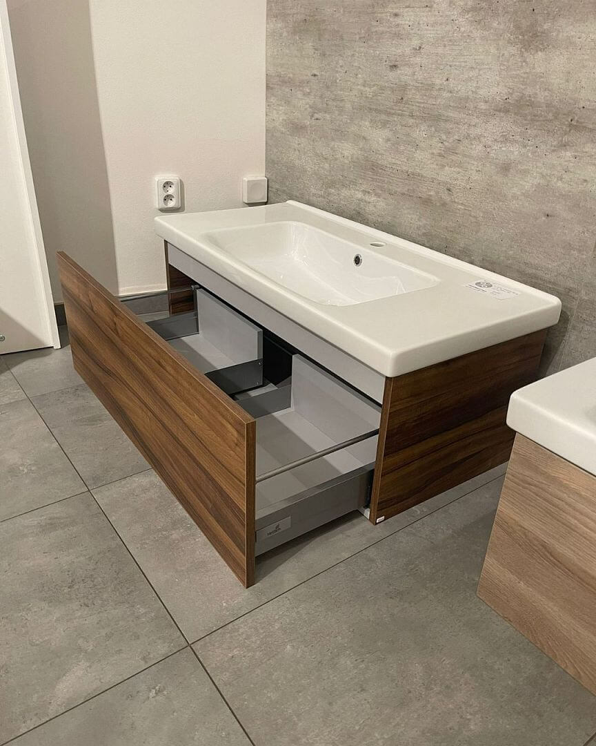 Závěsná umyvadlová skříňka VARIANTE SZZ 100 s jednou prostornou zásuvkou si vás získá na první pohled. Jednoduchý a velice nadčasový design ostrých linií, který neruší žádná úchytka, bude patřit do moderních koupelen i za několik let. Bezúchytkový systém Push-to-open si oblíbí každý člen domácnosti. Stejně tak tlumené dovírání, které ocení především ti, kteří si rádi dopřejí nerušené ráno. Skříňka je vyrobena v dřevodekoru D06 Ořech.