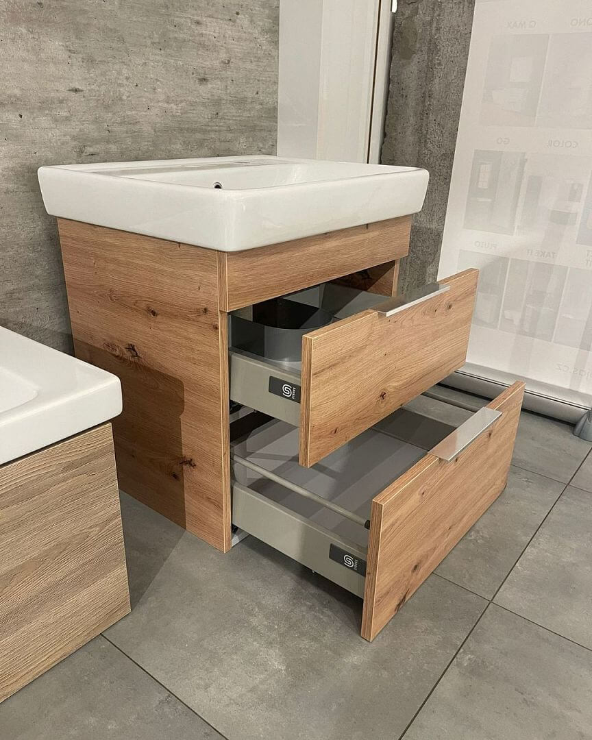 Závěsná umyvadlová skříňka (545x560x436) se 2 zásuvkami a keramickým umyvadlem Q 60 Zobrazit více