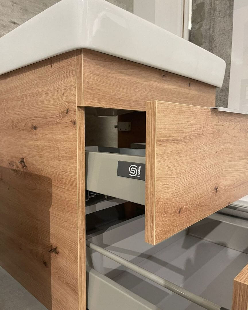 Umyvadlovou skříňku PROJECT BENEFIT SZZ2 60 si oblíbíte nejen díky jednoduchému a líbivému designu, ale také díky praktickému rozložení úloženého prostoru do 2 přehledných zásuvek. Snadno tak uložíte ručníky, čisticí prostředky i drobnosti každodenní potřeby na své místo. Zásuvky jsou uloženy na kvalitním kování Strong, které zajišťuje plynulou manipulaci. Zásuvky se otevírají pomocí subtilní úchytky T05. Skříňka je vyrobena v oblíbeném dřevodekoru D22 Karamel.