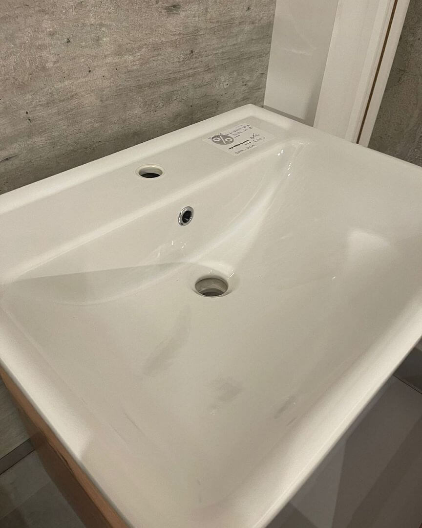 Keramické umyvadlo Q 60 s výraznější výškou lehce přesahuje přes okraje skříňky. Dodává tak celé skříňce na důrazu v jakémkoliv prostoru. Umyvadlo má v zadní části místo k odložení mýdla i zubních kartáčků. Zaoblené hrany lehce zjemňují přesah umyvadla i ostré linie umyvadlové skříňky. V celkovém dojmu tak skříňka s umyvadlem působí příjemně a jednoduše. Umyvadlo lze doplnit kovovou výpustí Click-clack.